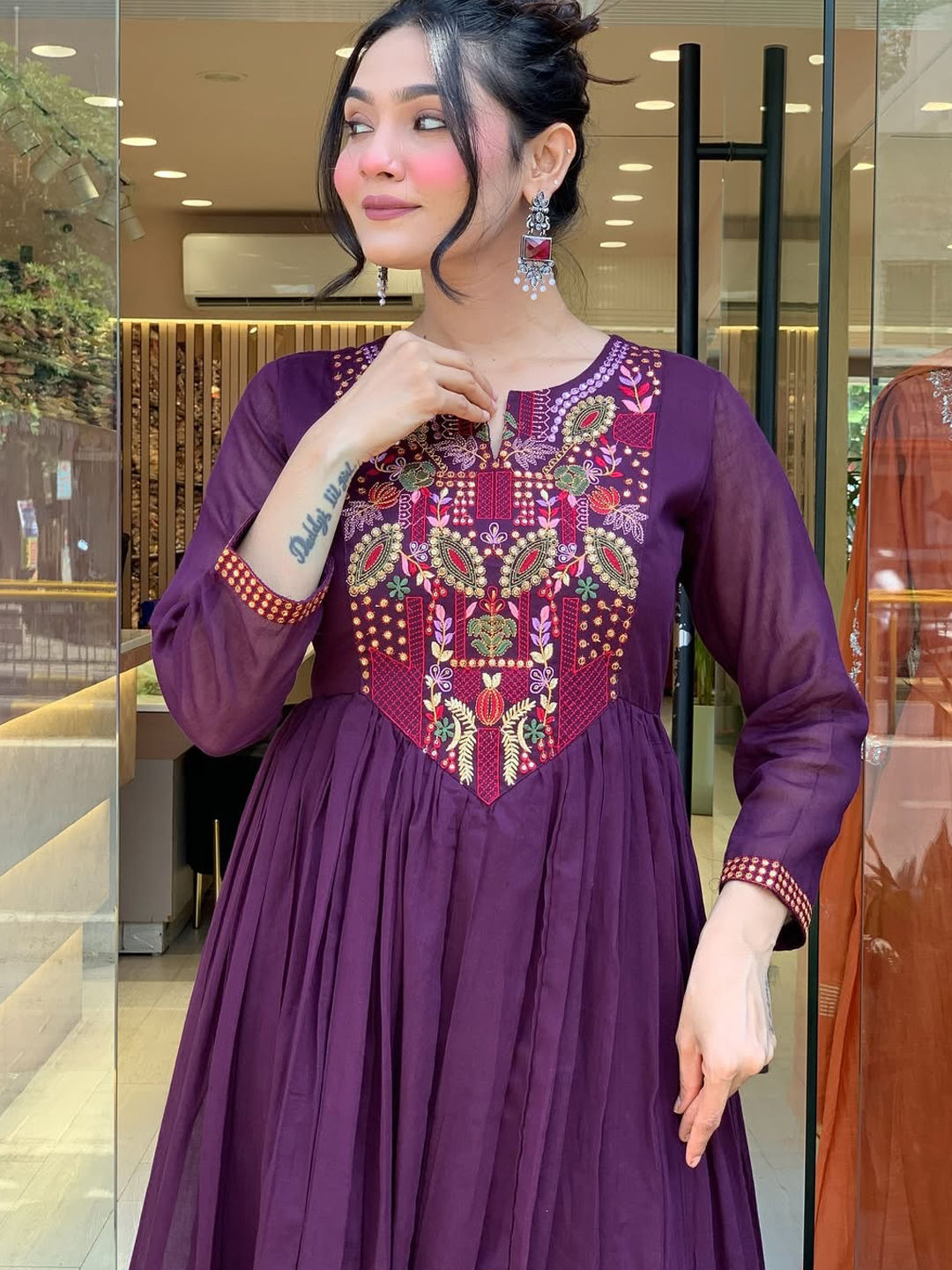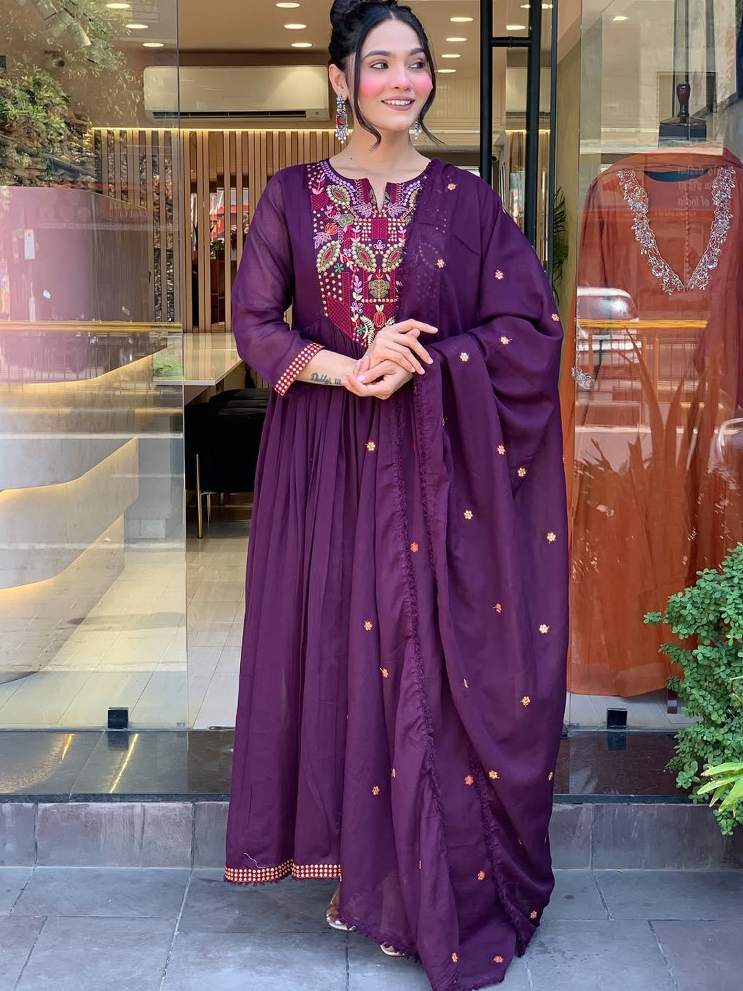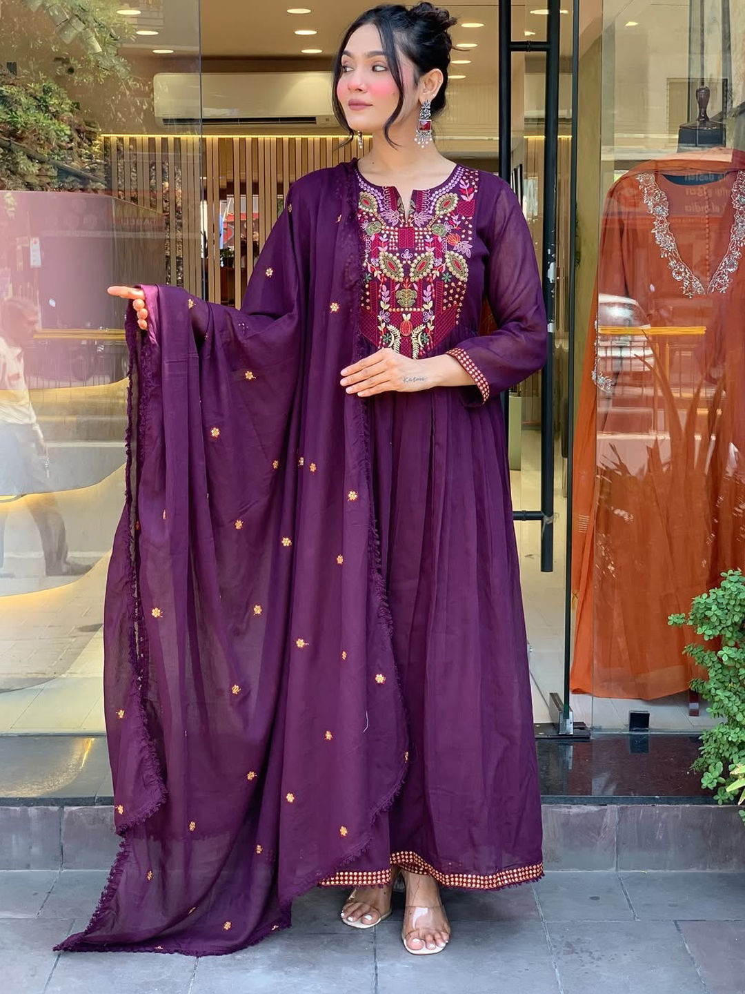 Purple and Violet color Salwar Kameez in Chanderi Silk, Viscose fabric with Embroidered, Thread work