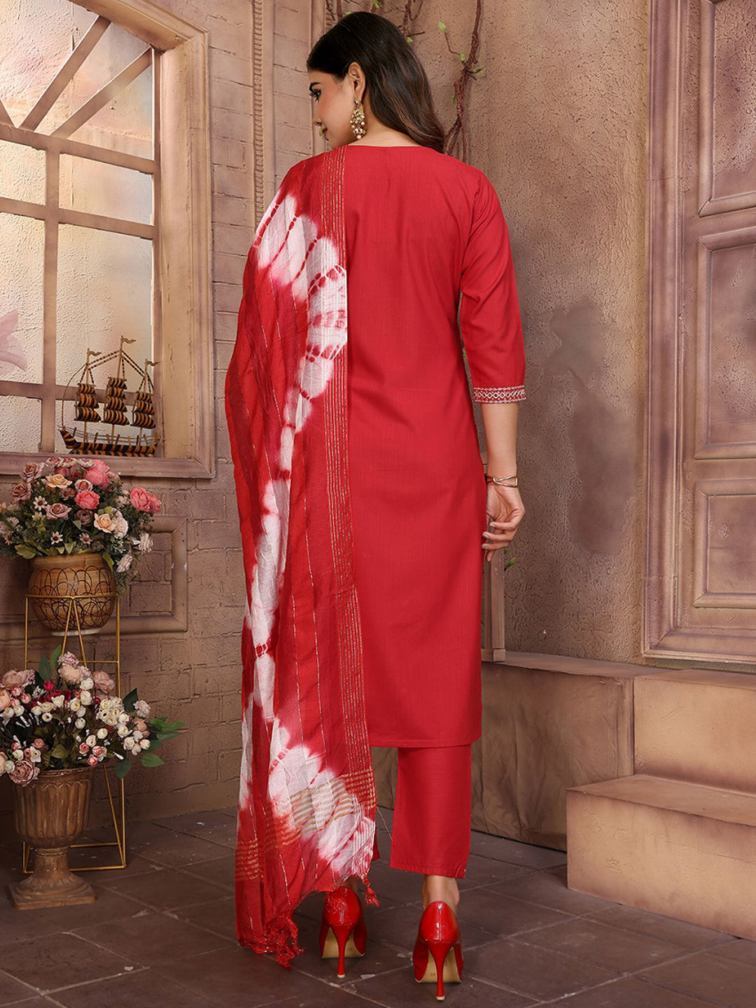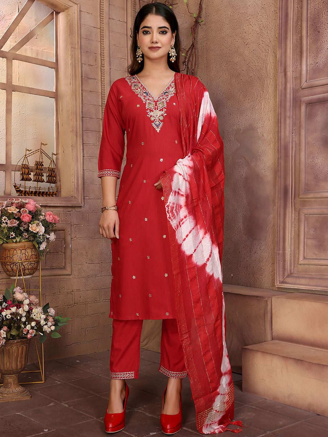 in Red and Maroon with Embroidered work