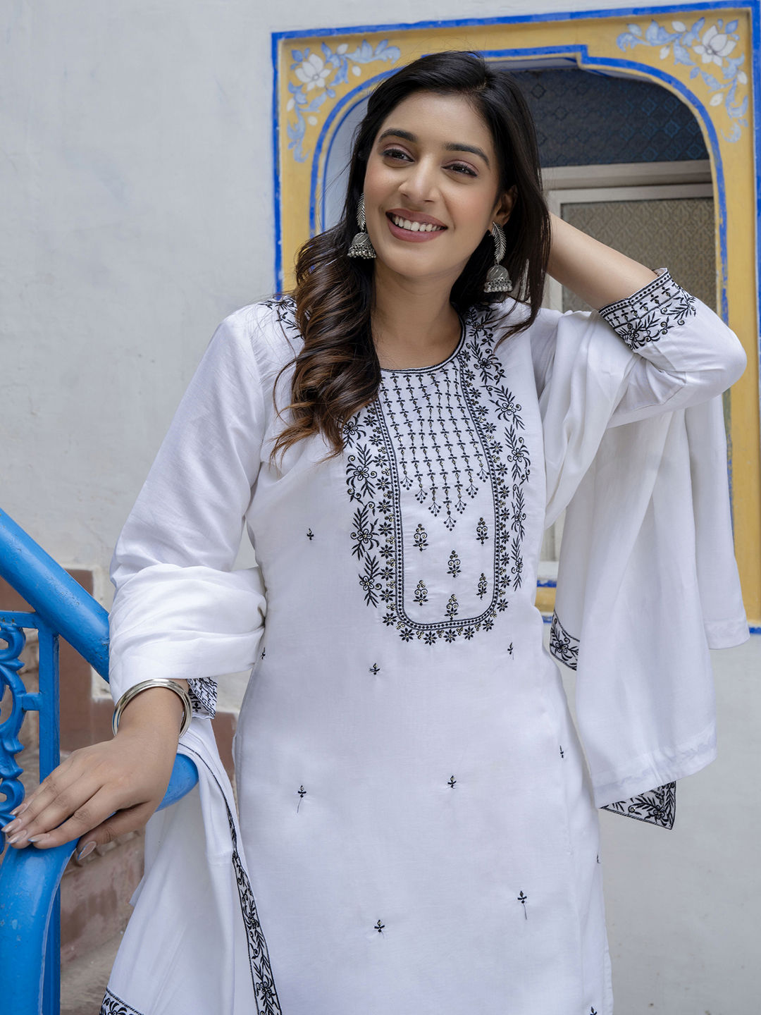 White and Off White color Salwar Kameez in Viscose fabric with Embroidered, Thread work