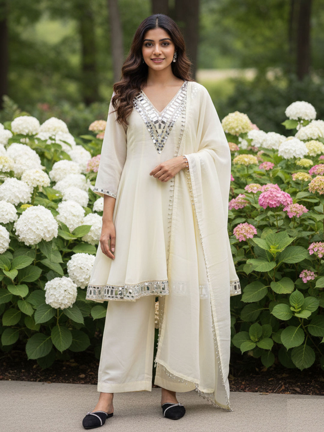 in White and Off White with Mirror work