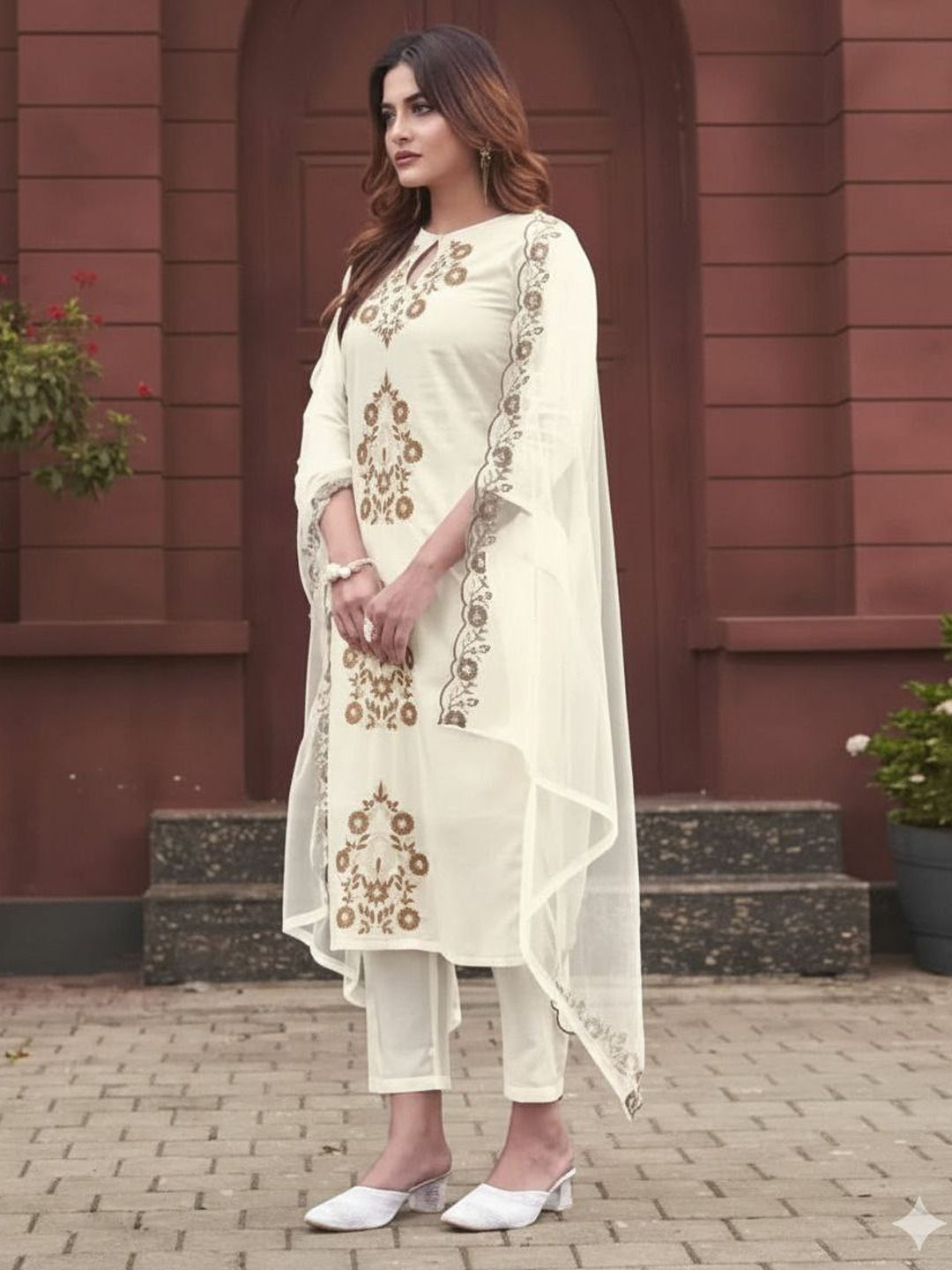 White and Off White color Salwar Kameez in Rayon, Viscose fabric with Embroidered, Resham, Sequence work