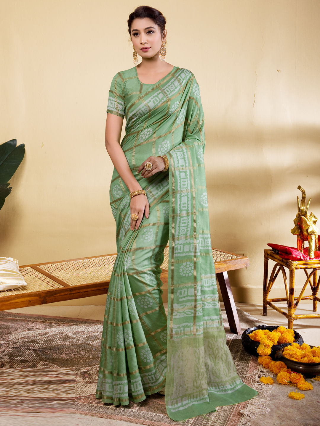 Green color Saree in Viscose fabric with Bandhej, Printed work