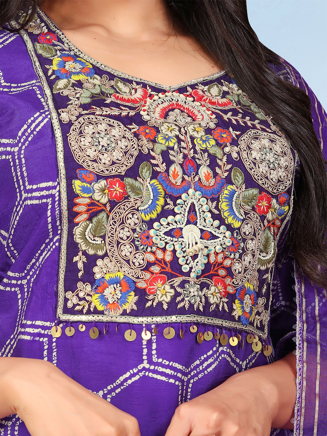 in Purple and Violet with Embroidered work