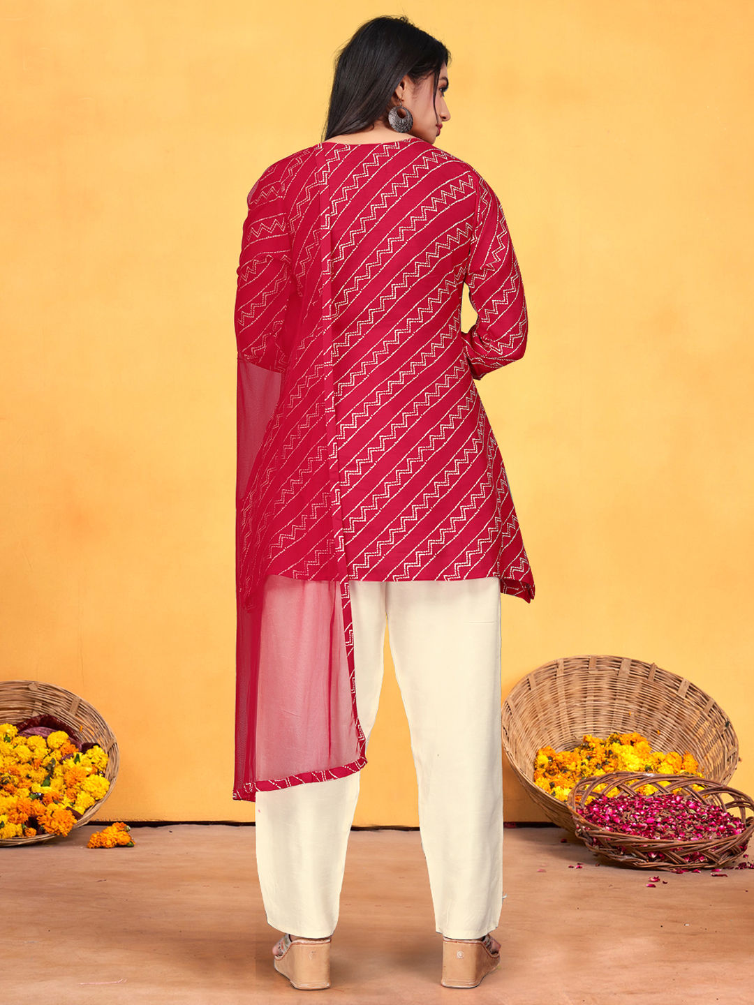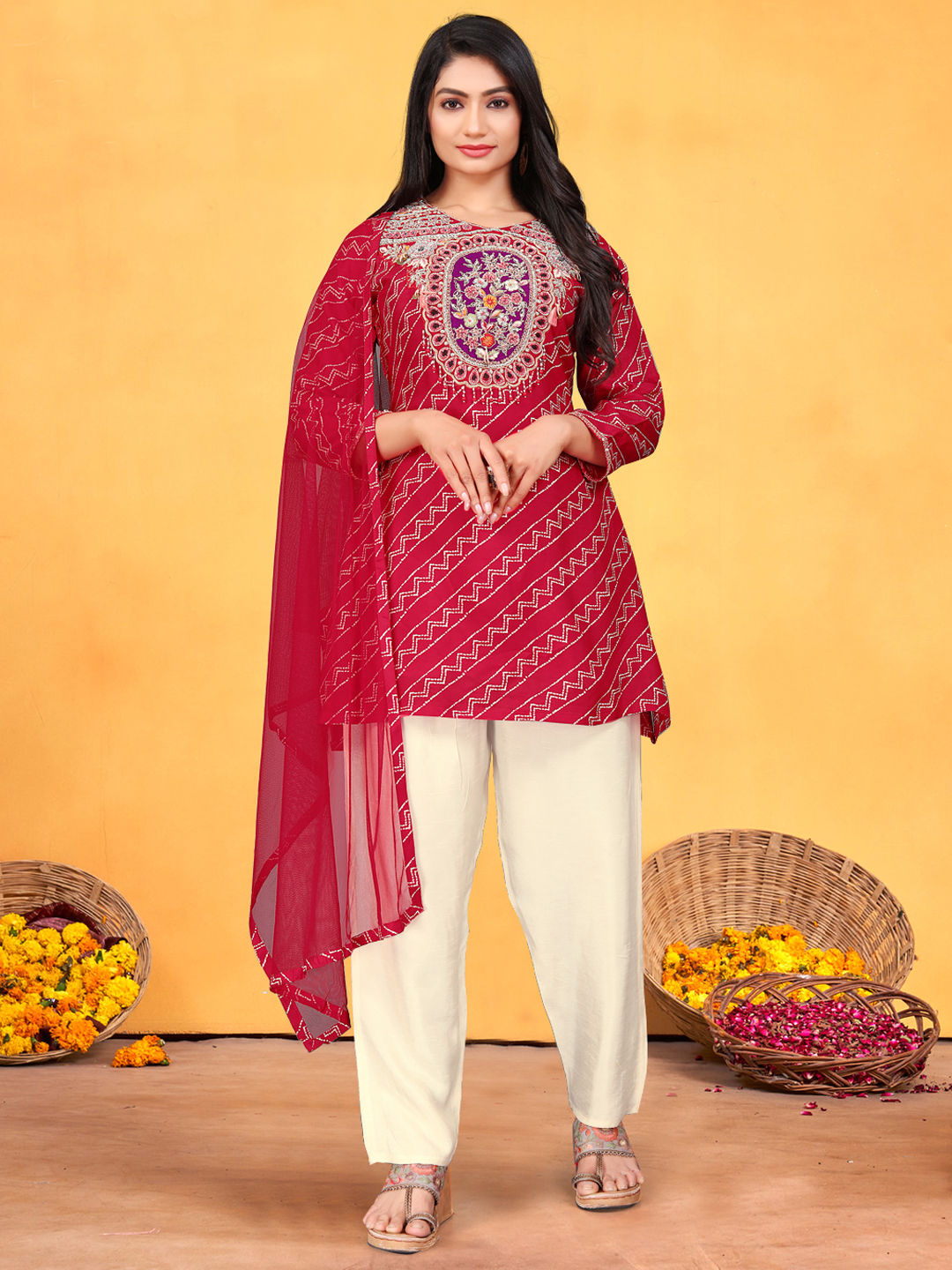 Viscose Festive Salwar Kameez in Red and Maroon with Bandhej work