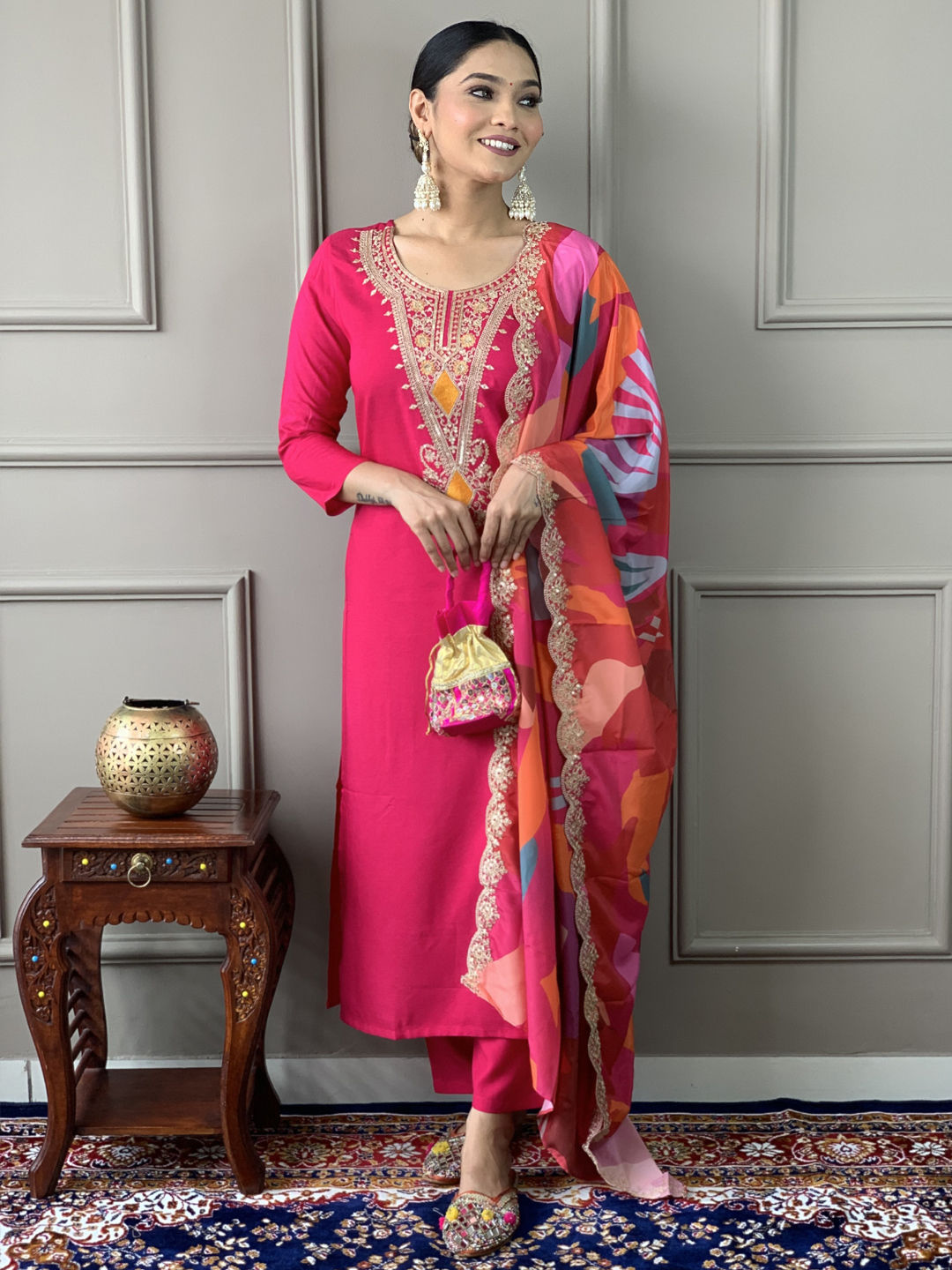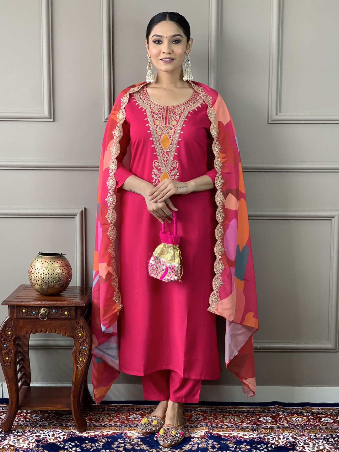 Viscose Reception Salwar Kameez in Pink and Majenta with Embroidered work