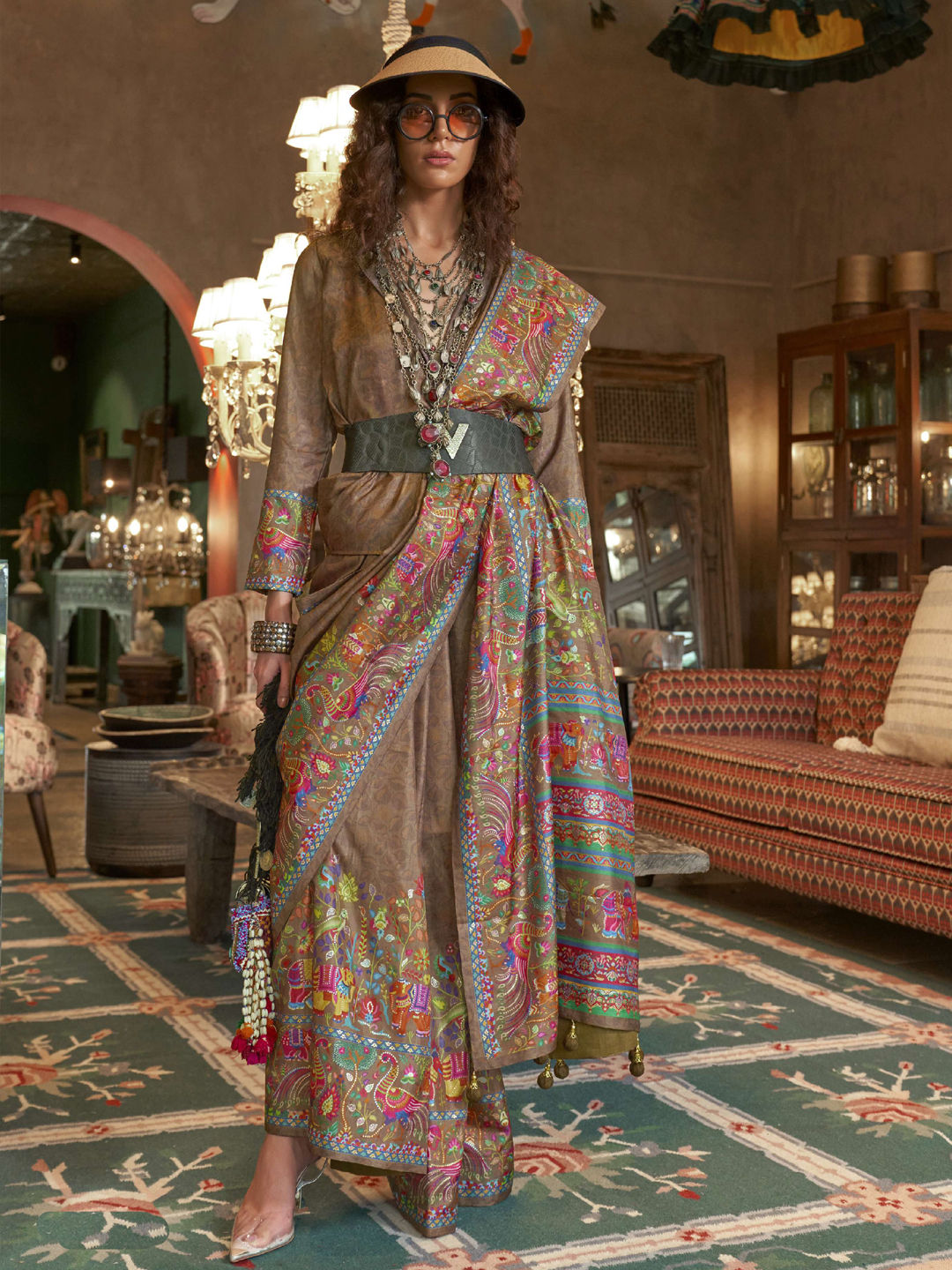 Beige and Brown color Saree in Viscose fabric with Printed work