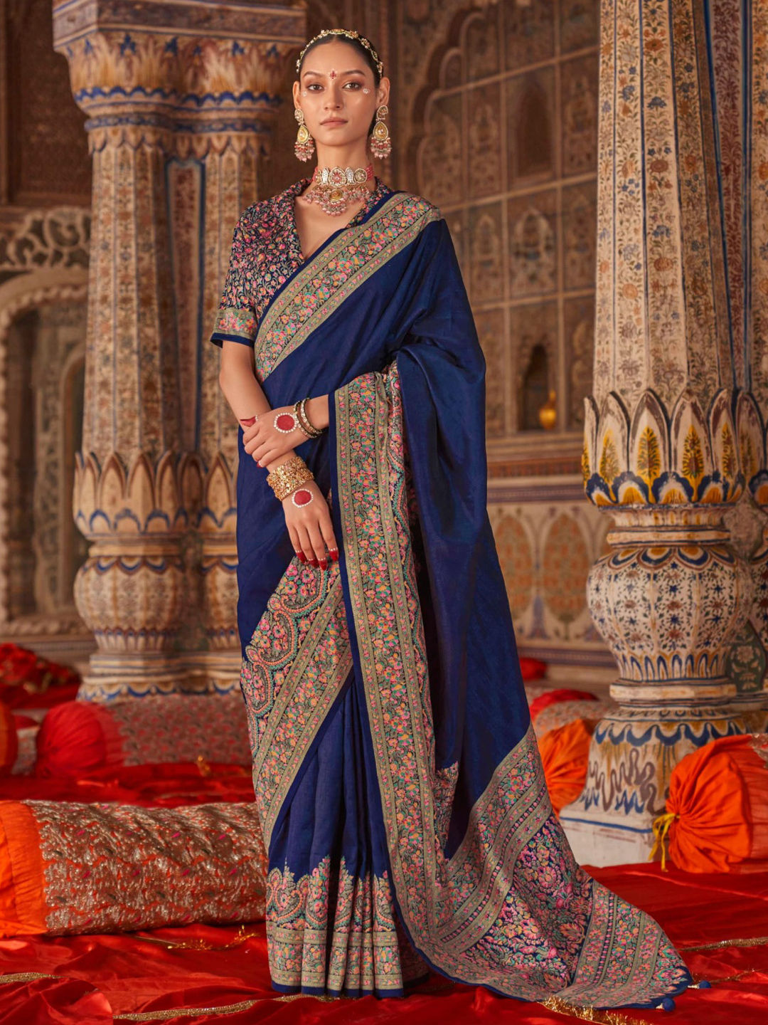 in Blue with Zari work