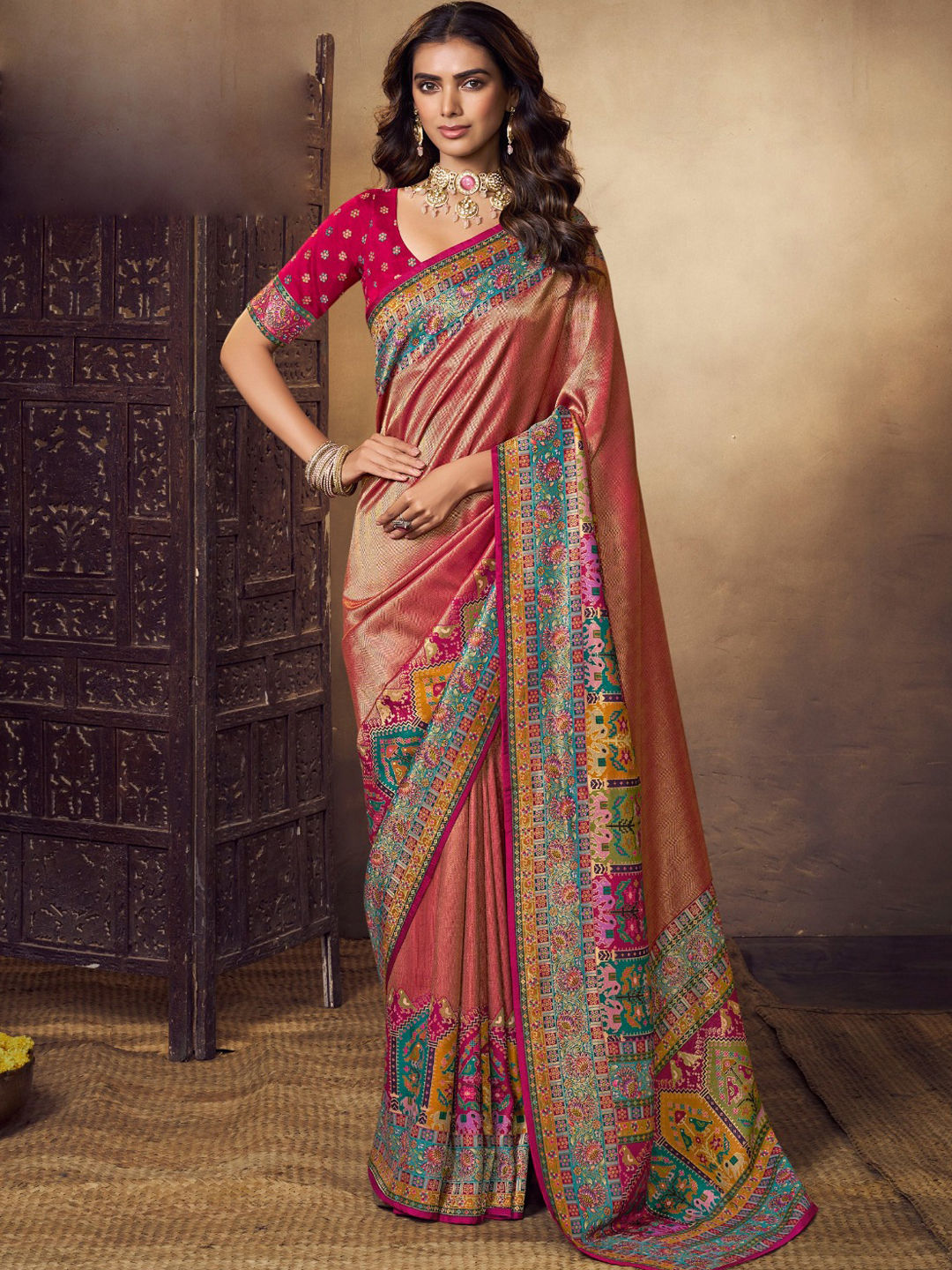 Red and Maroon color Saree in Viscose fabric with Printed work