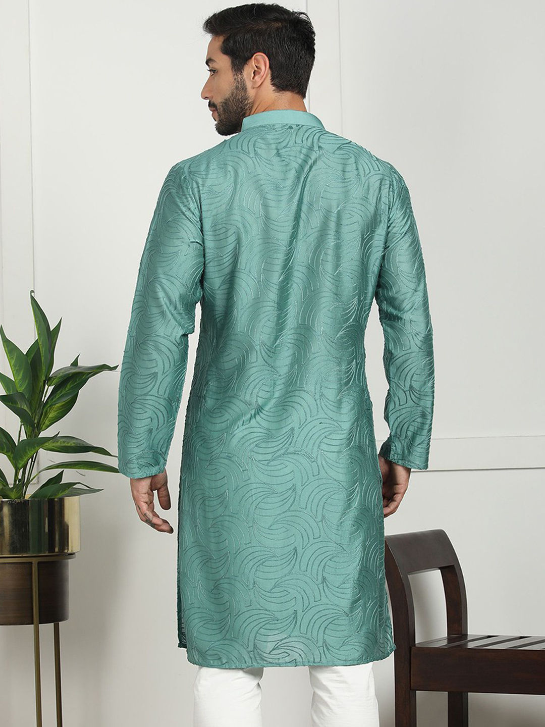Green color Kurta in Rayon, Viscose fabric with Embroidered, Resham, Thread work