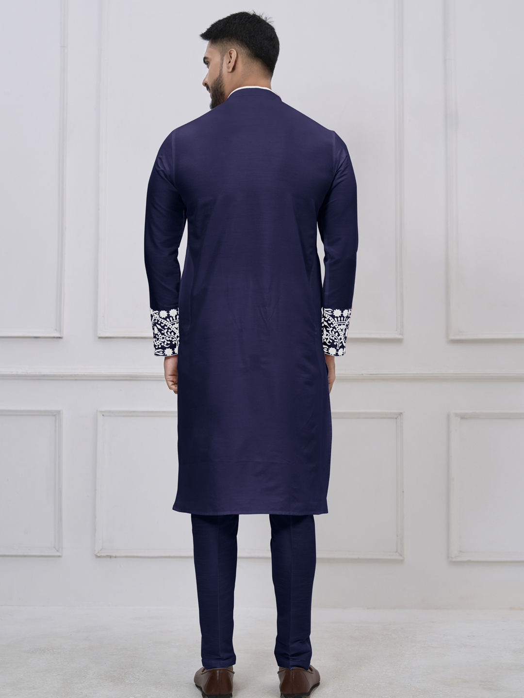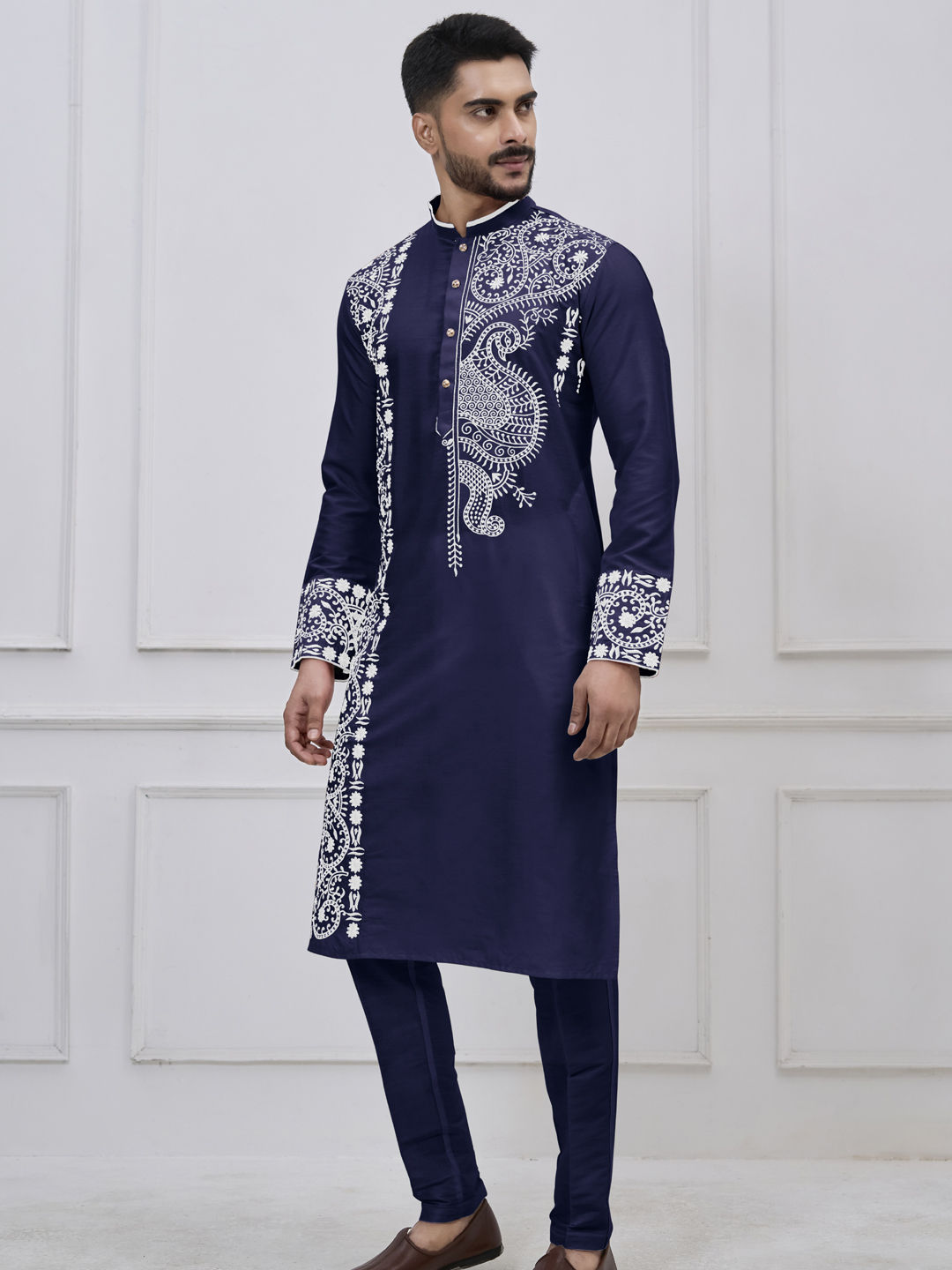 Blue color Kurta Pyjamas in Viscose fabric with Embroidered, Thread work