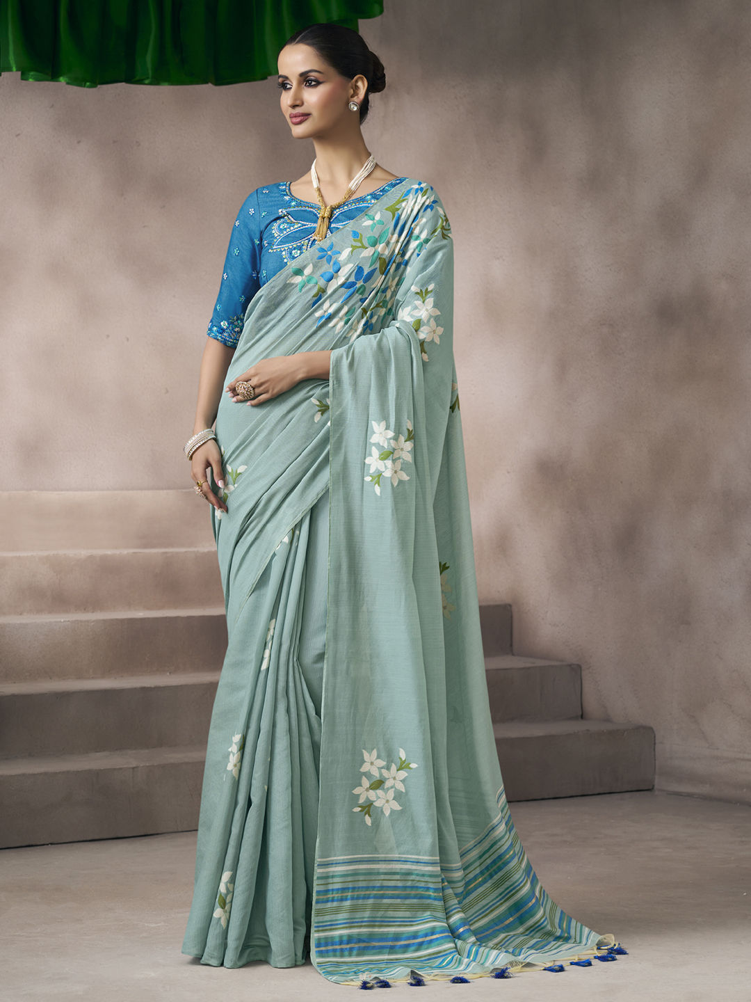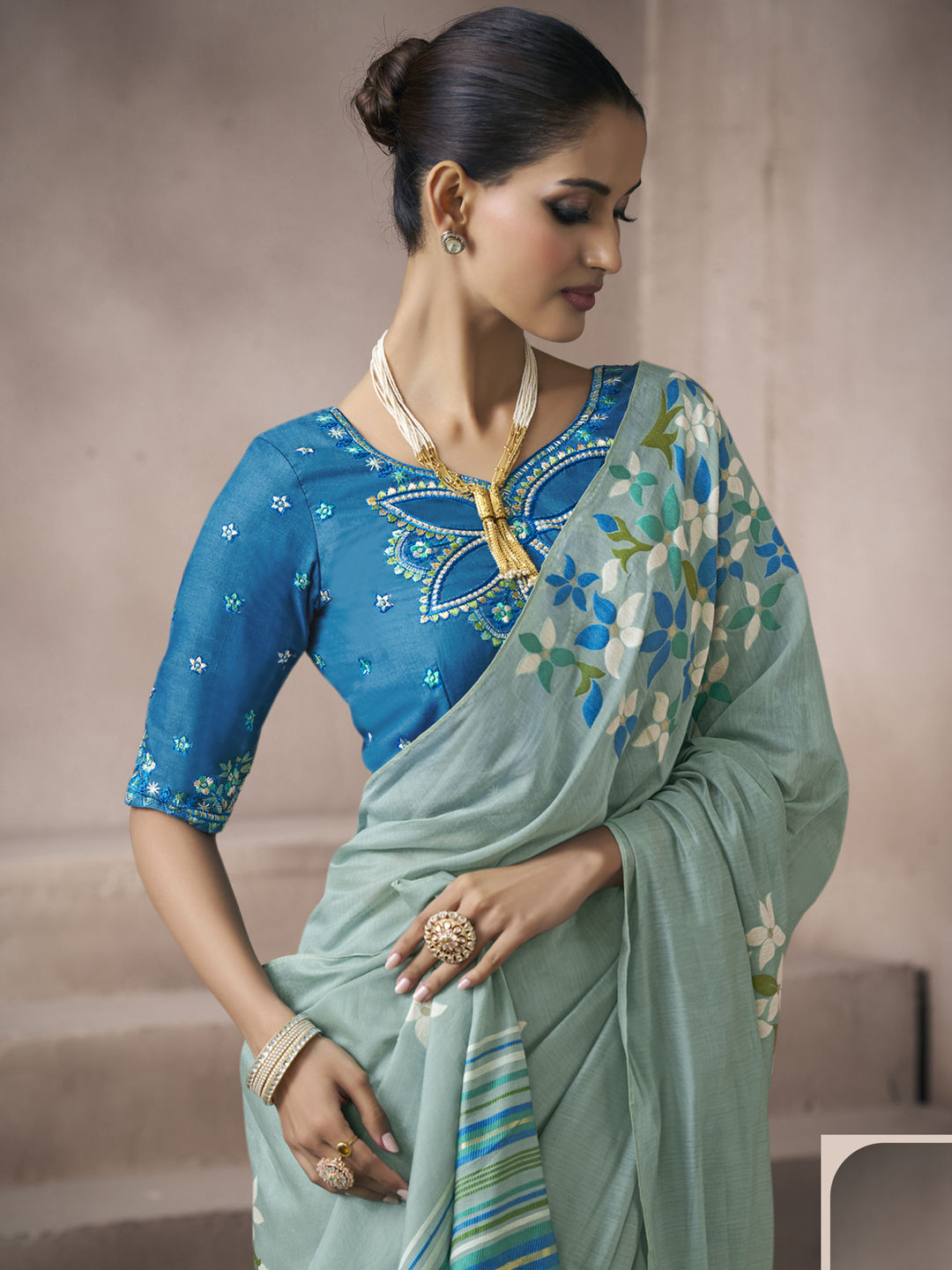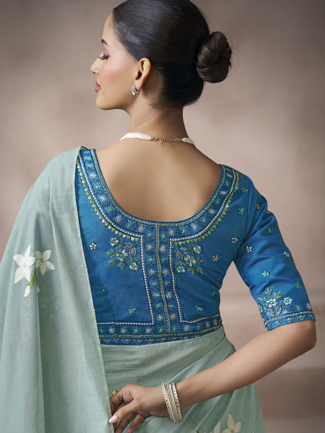 Blue color Saree in Cotton, Viscose fabric with Embroidered, Weaving work