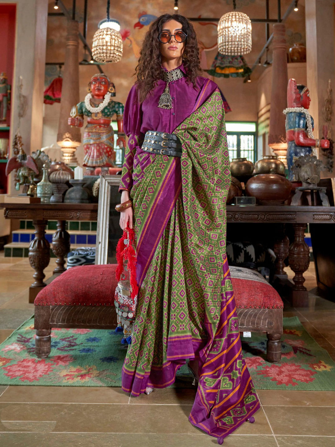 Viscose Traditional Saree in Pink and Majenta with Printed work