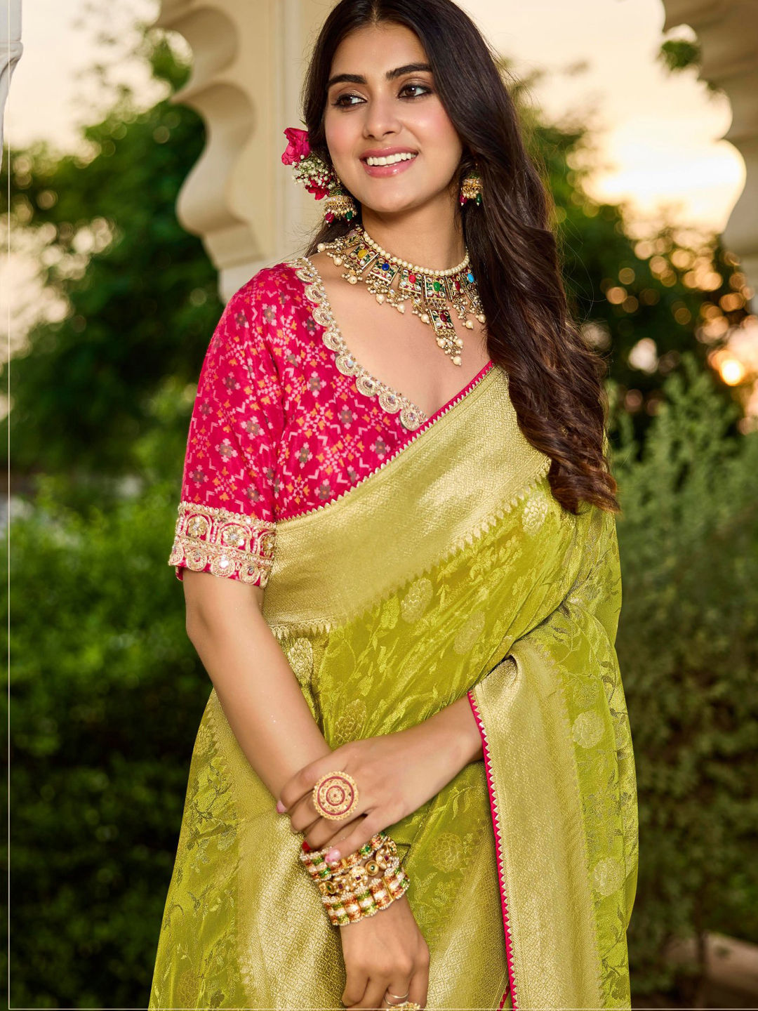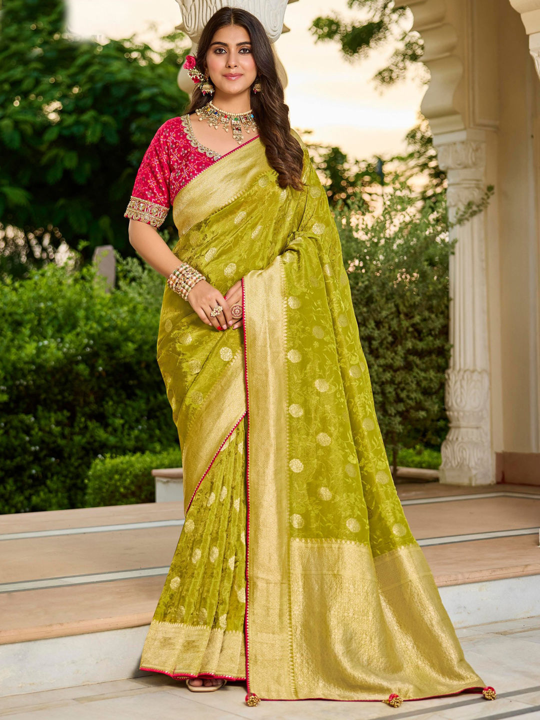 Viscose Festive Saree in Pink and Majenta with Weaving work