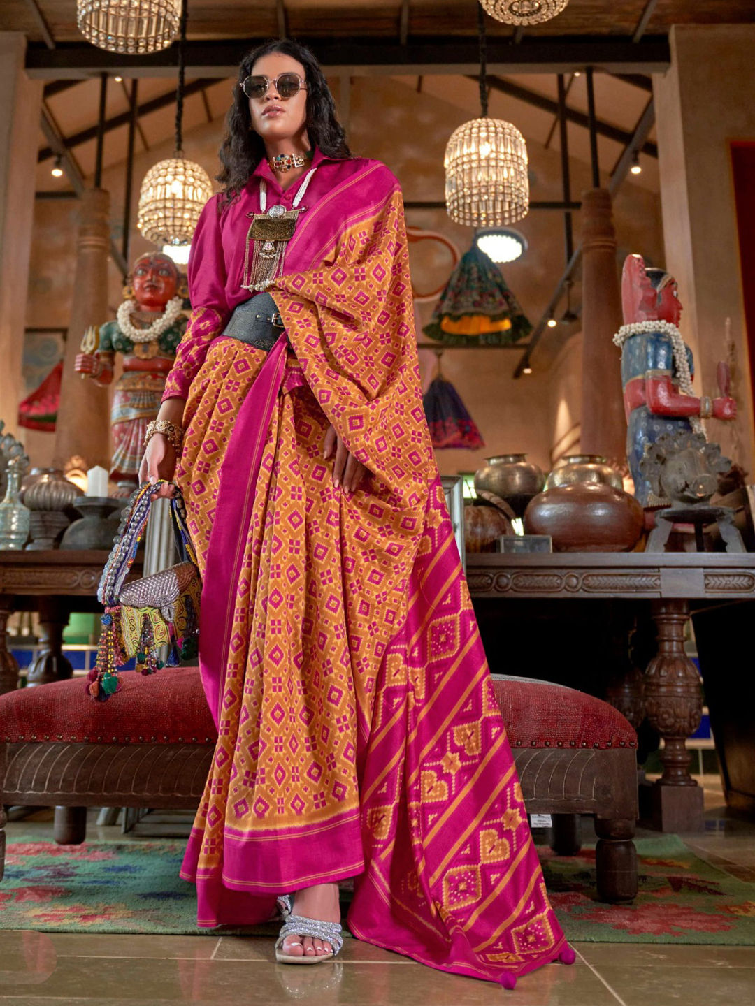Viscose Traditional Saree in Pink and Majenta with Printed work