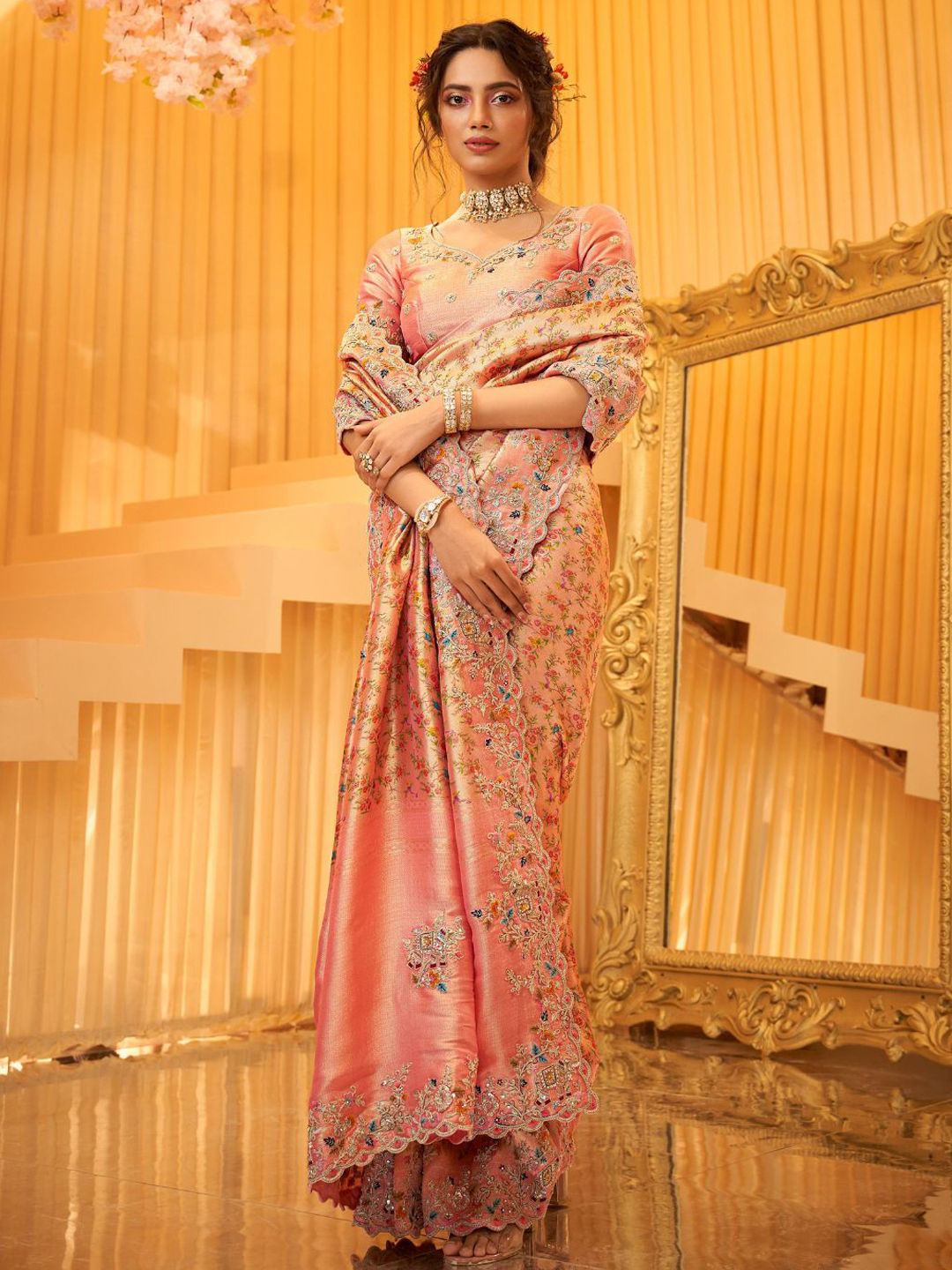 Viscose Bridal Saree in Multicolor with Resham work