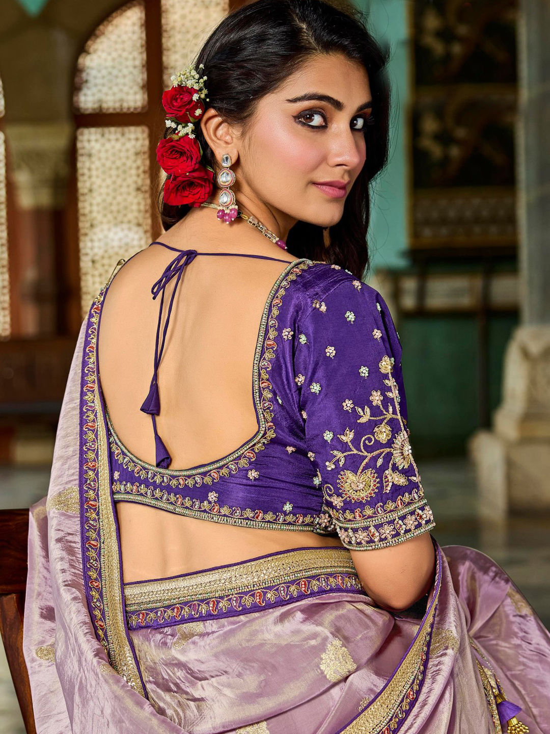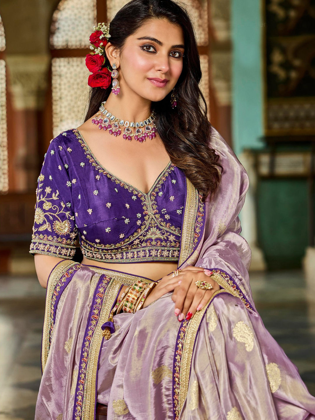 in Purple and Violet with Embroidered work