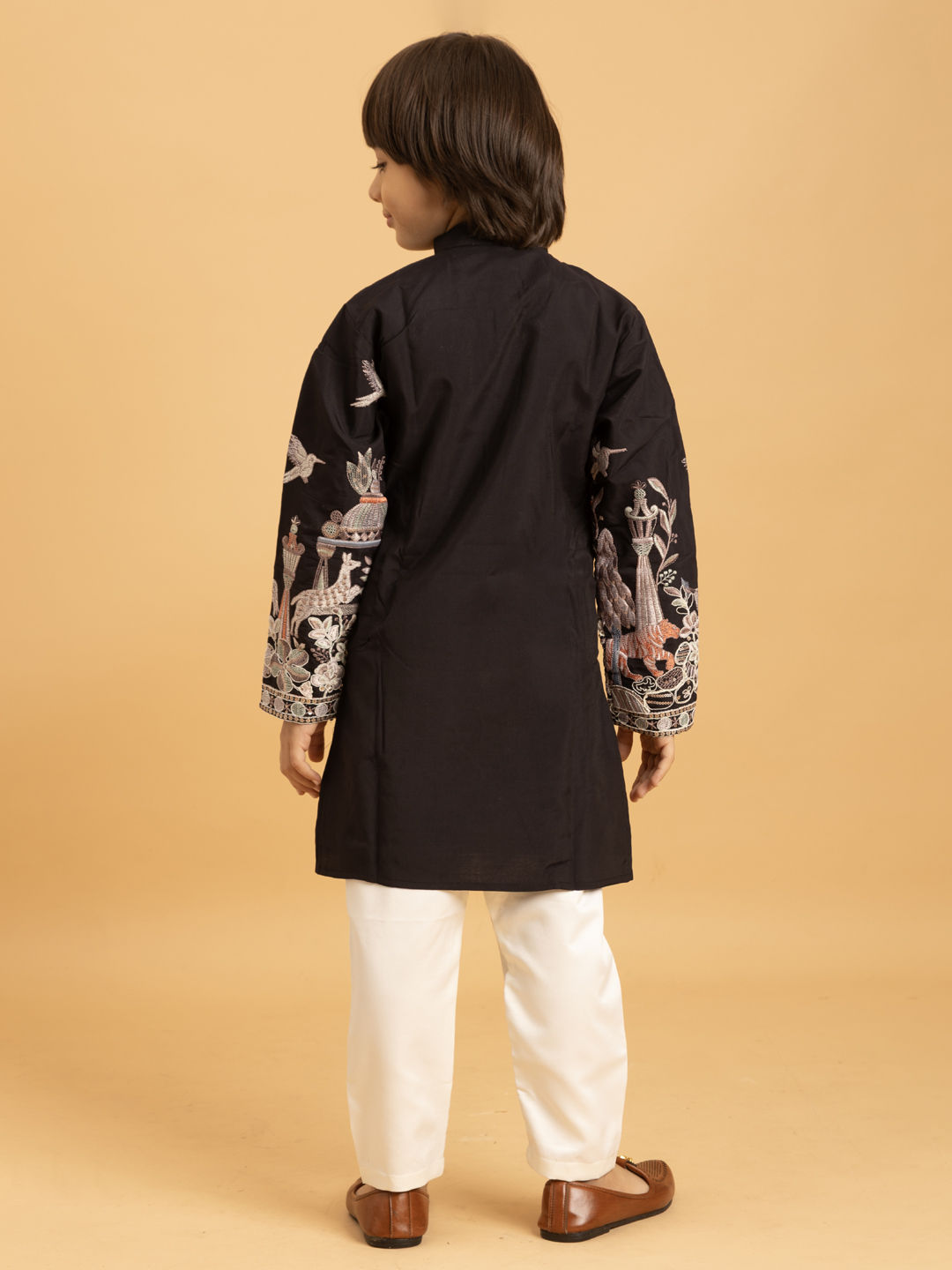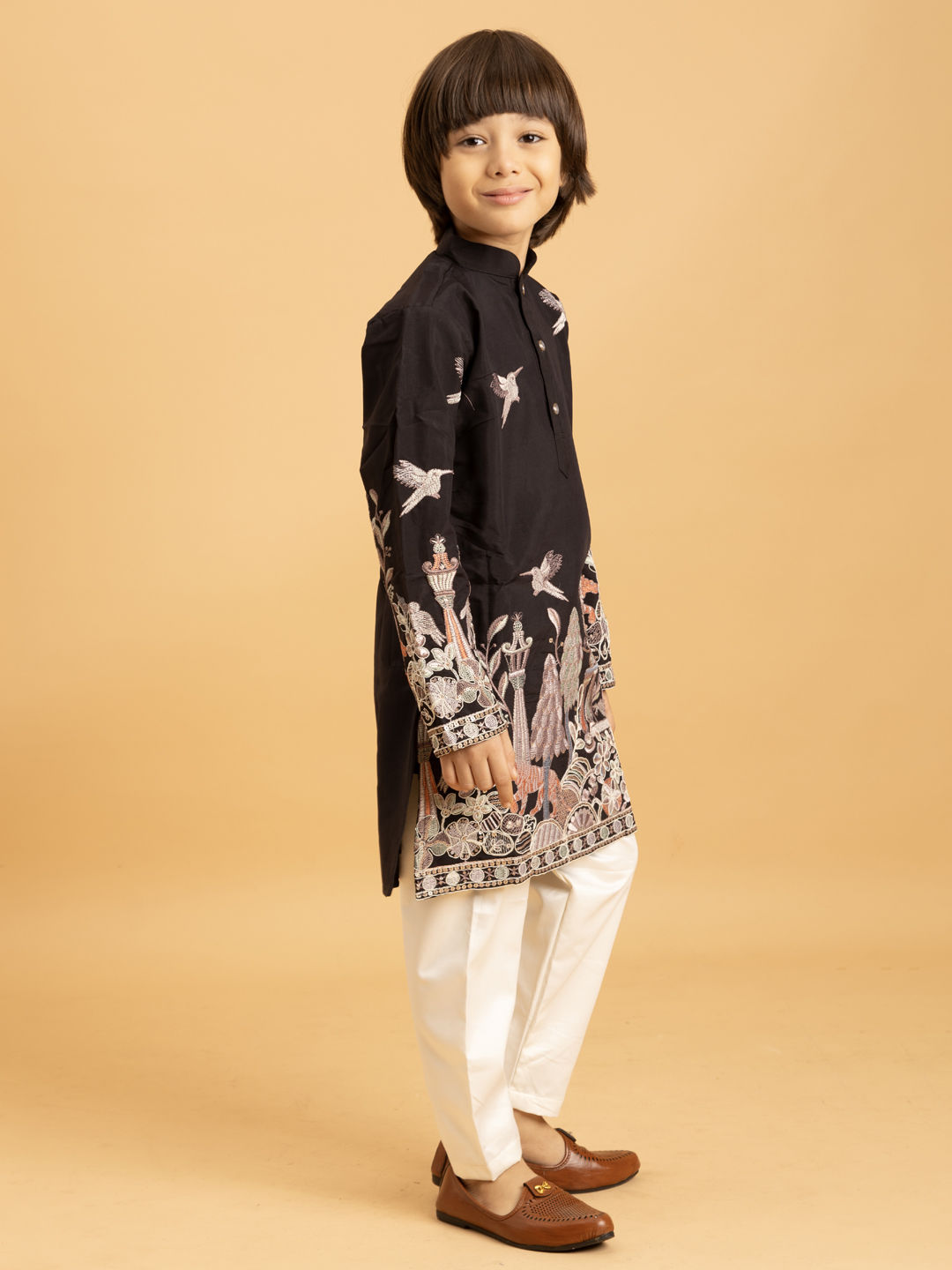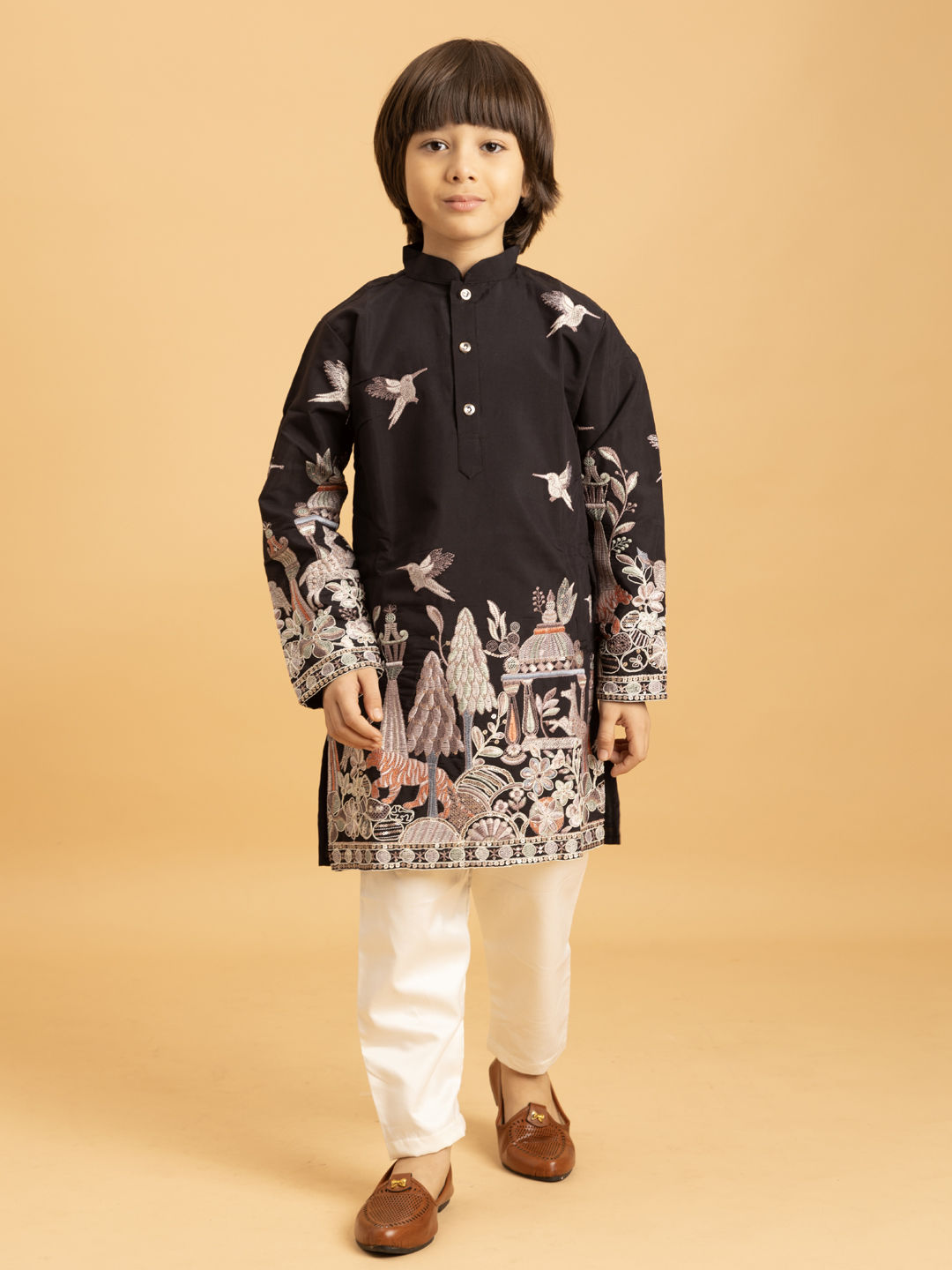 Black and Grey color Boys Kurta Pyjama in Viscose fabric with Embroidered, Sequence work