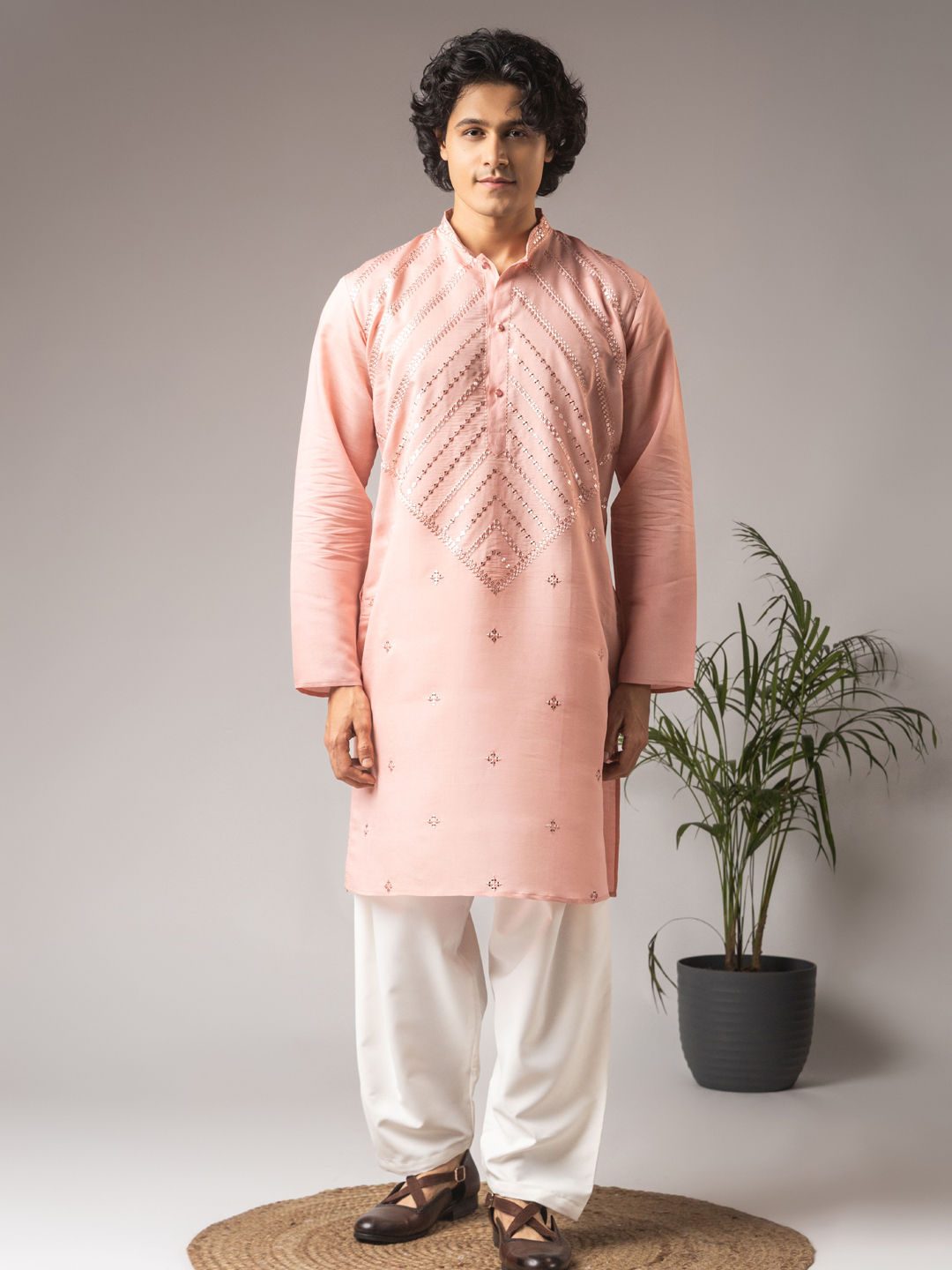 Rayon Festive Kurta Pyjamas in Pink and Majenta with Embroidered work