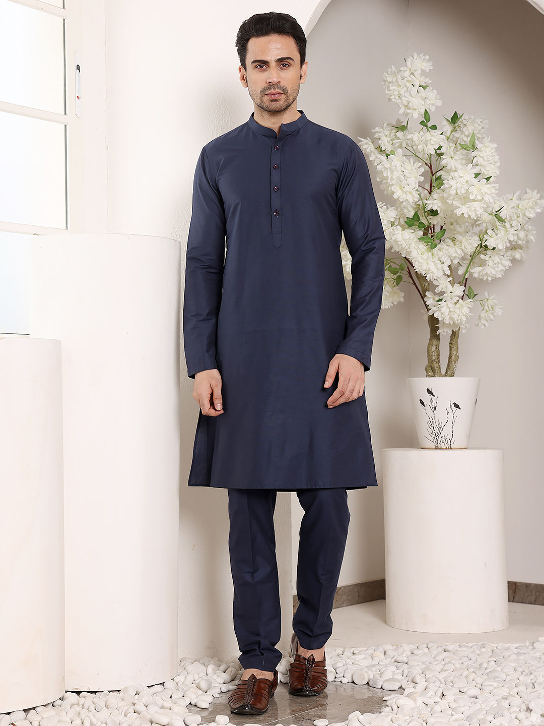 Cotton Festive Kurta Pyjamas in Blue with Printed work