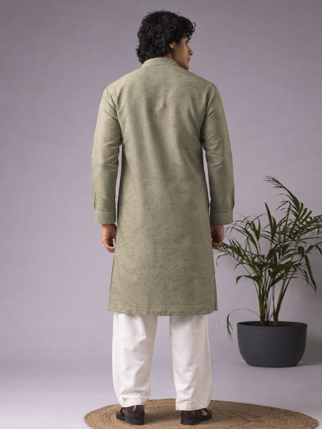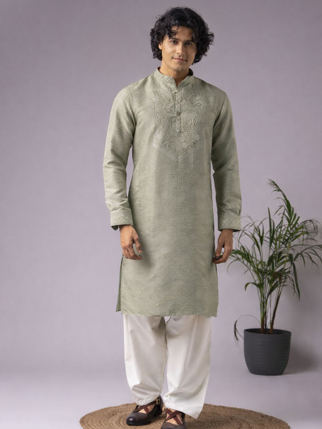 Green color Kurta Pyjamas in Rayon, Viscose fabric with Embroidered, Thread work