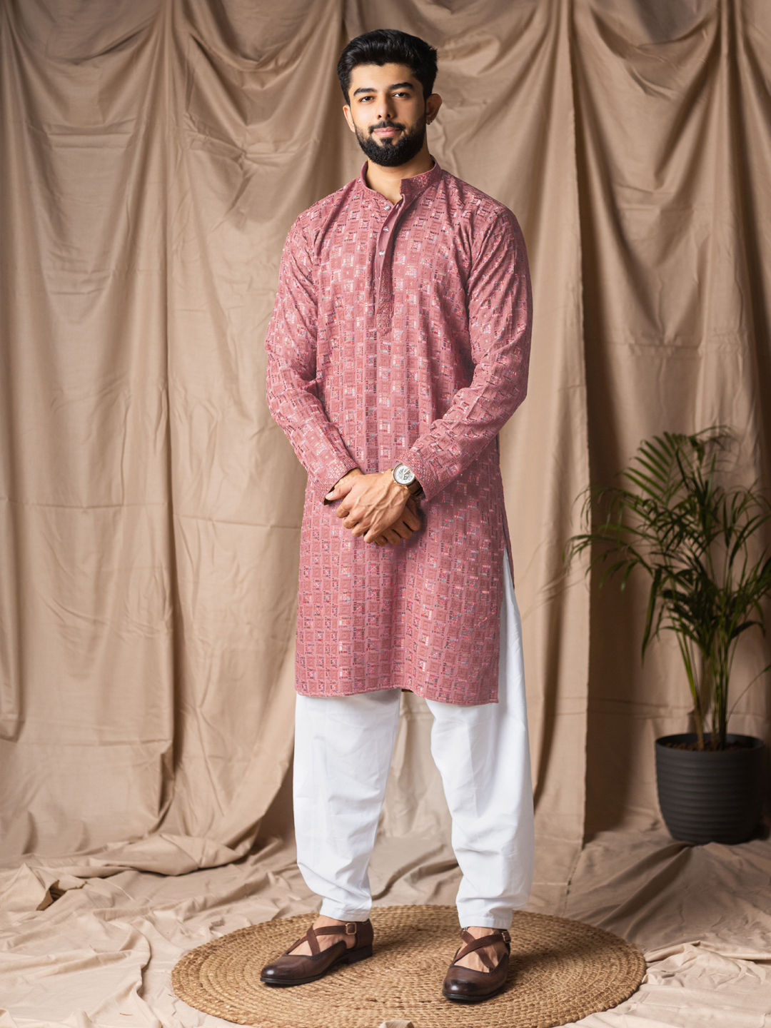 Viscose Traditional Kurta Pyjamas in Purple and Violet with Thread work