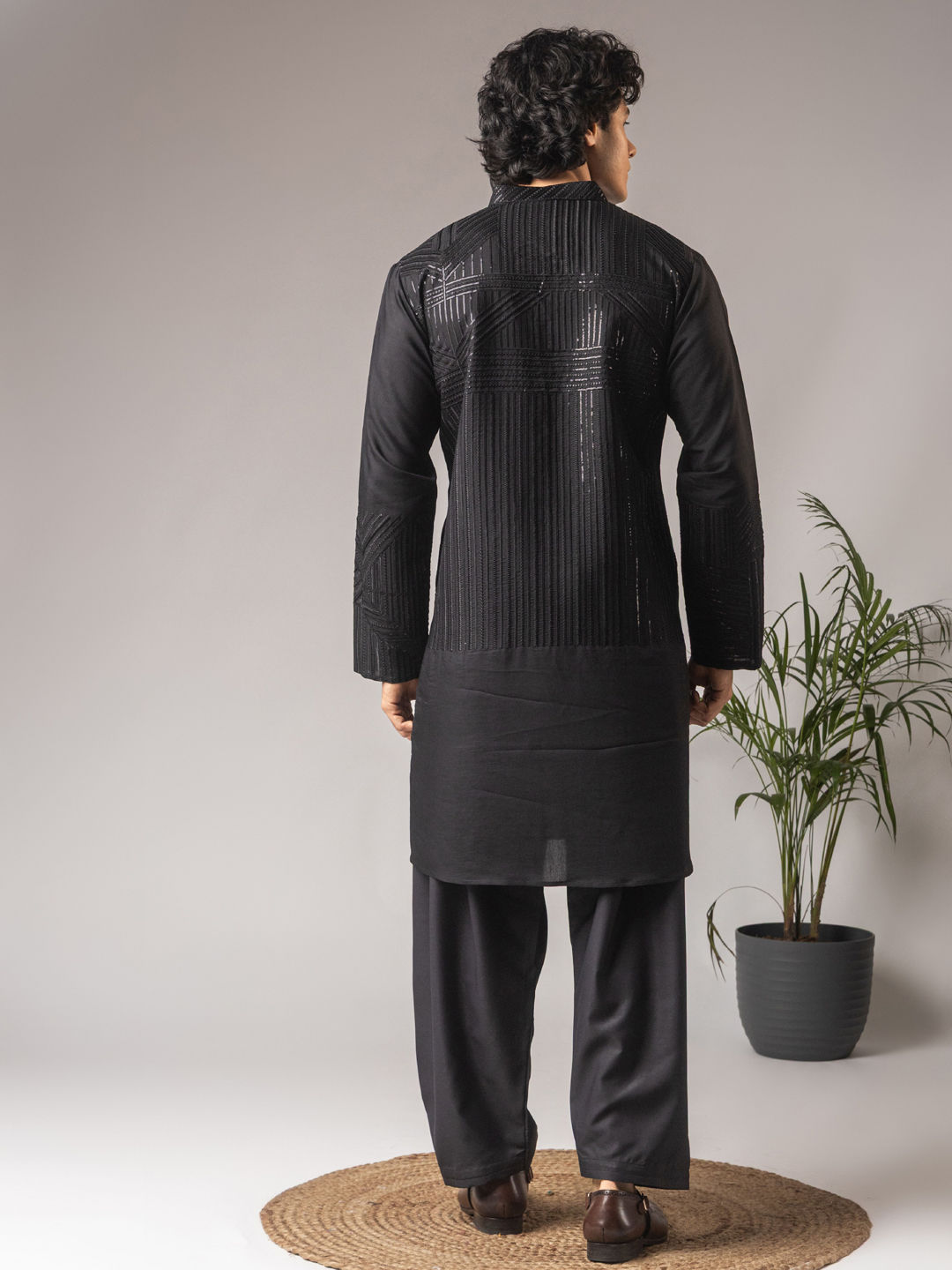 Rayon Festive Kurta Pyjamas in Black and Grey with Embroidered work