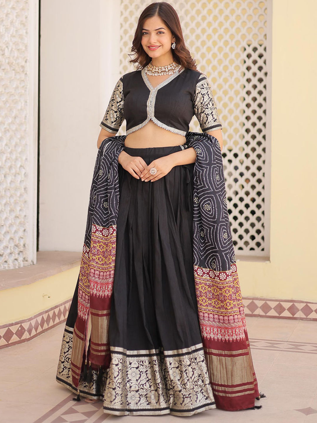 Black and Grey color Lehenga in Viscose fabric with Weaving work