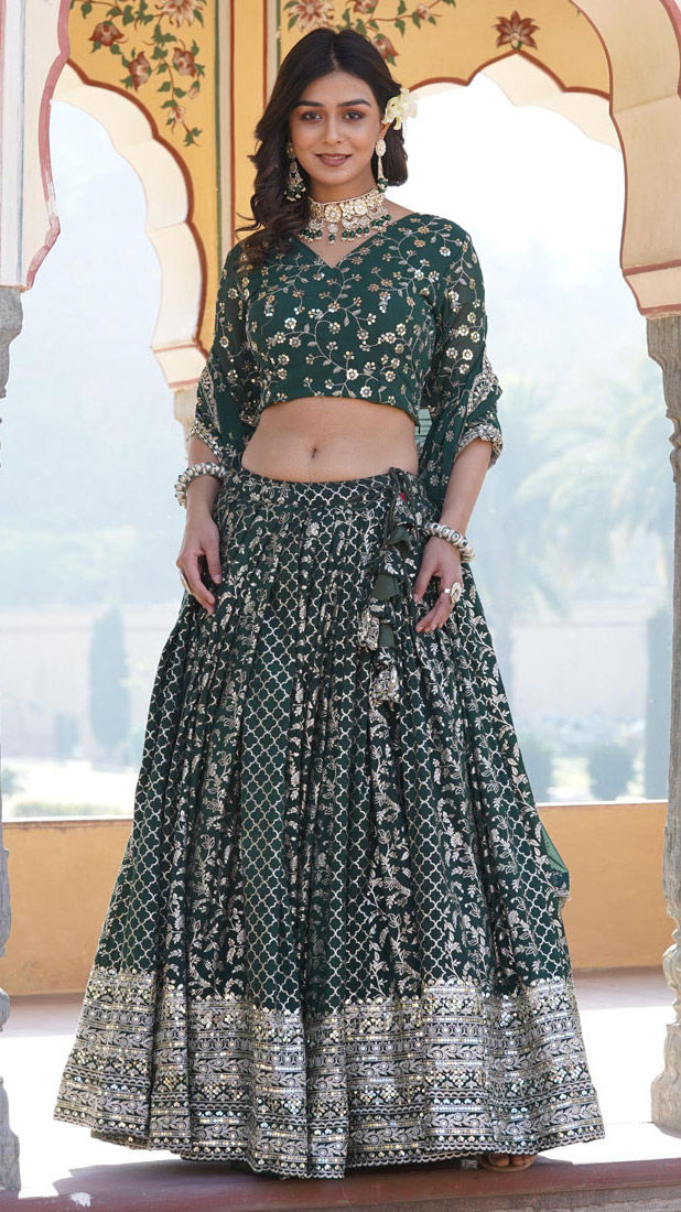 Green color Lehenga in Viscose fabric with Embroidered, Sequence work