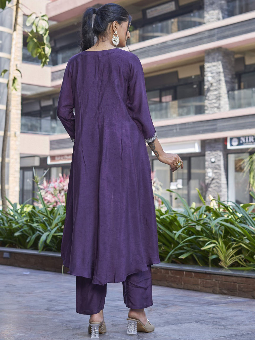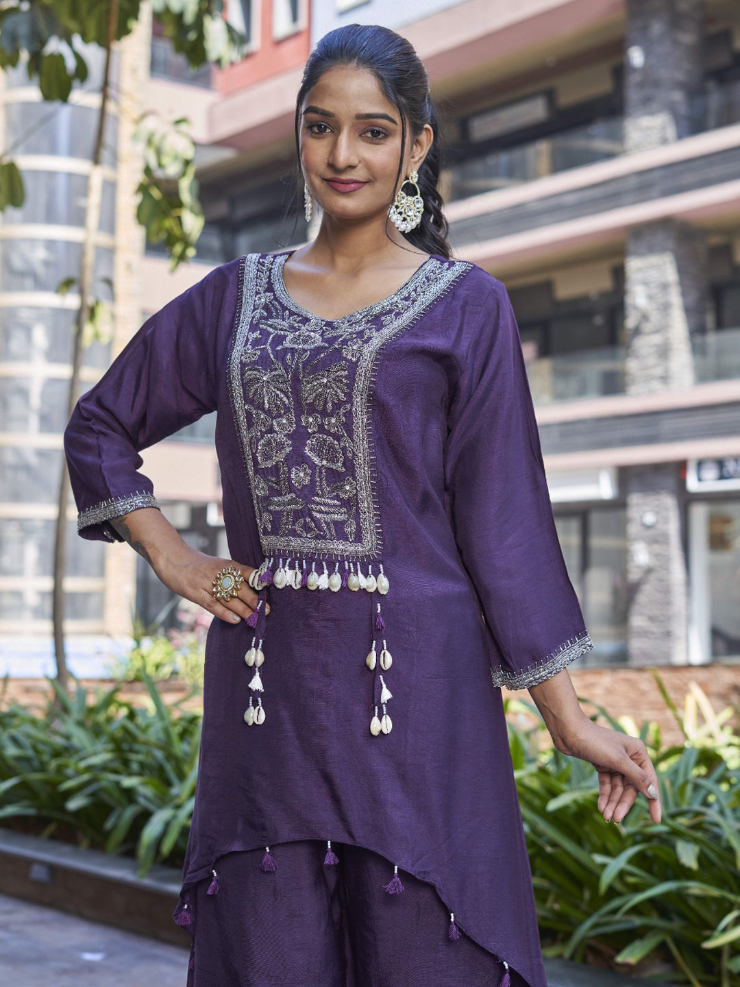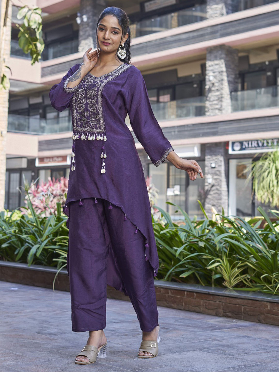 Viscose Reception Salwar Kameez in Purple and Violet with Embroidered work