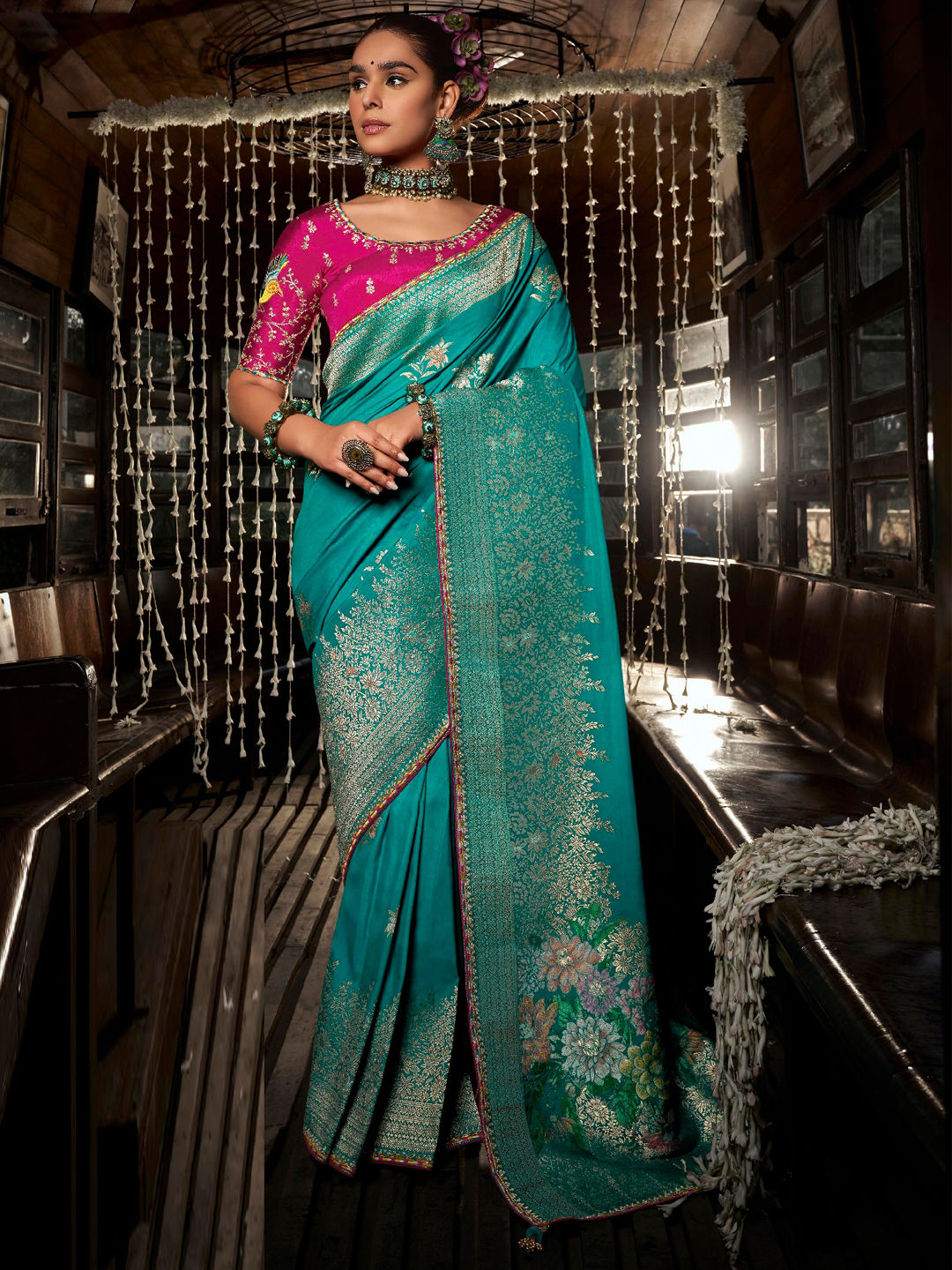 Blue color Saree in Viscose fabric with Weaving, Zari work