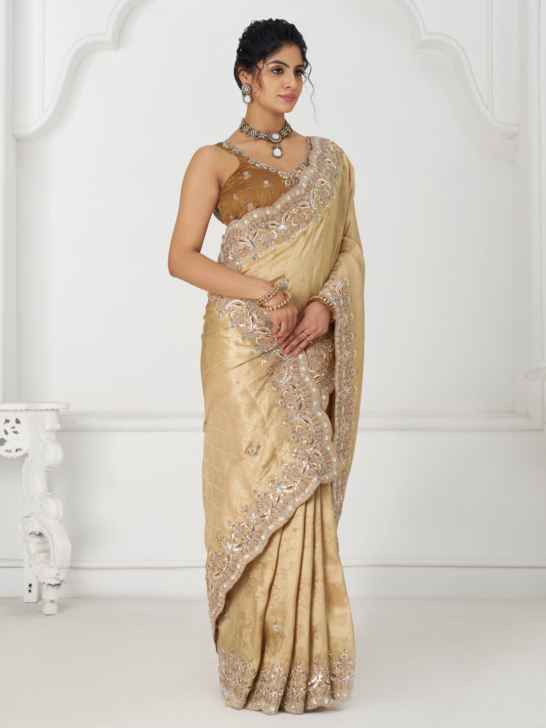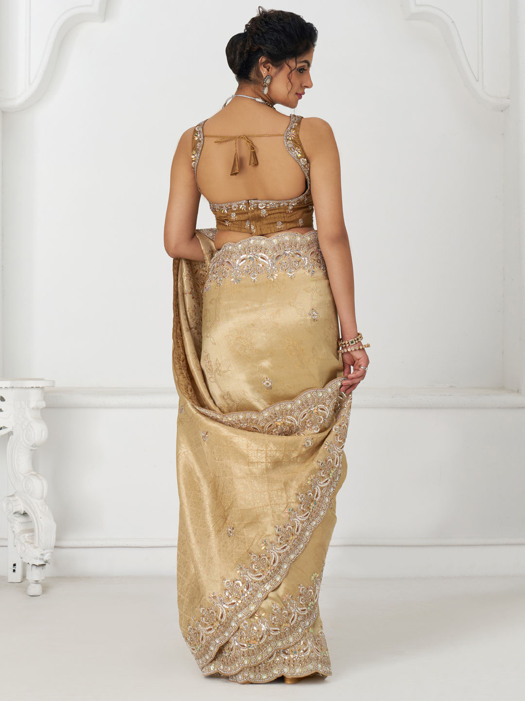 in Gold with Embroidered work