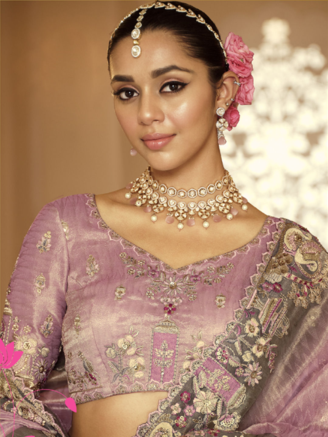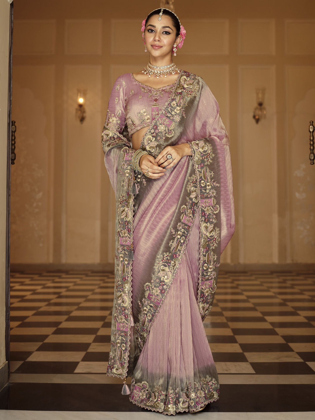 Viscose Bridal Saree in Pink and Majenta with Sequence work