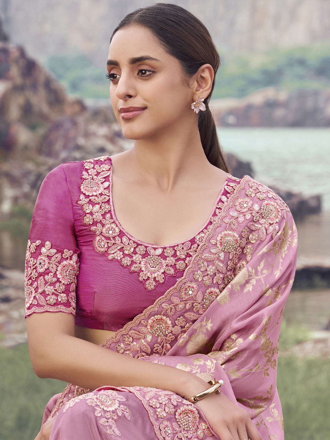 Pink and Majenta color Saree in Viscose fabric with Embroidered, Resham, Sequence, Thread, Zari work