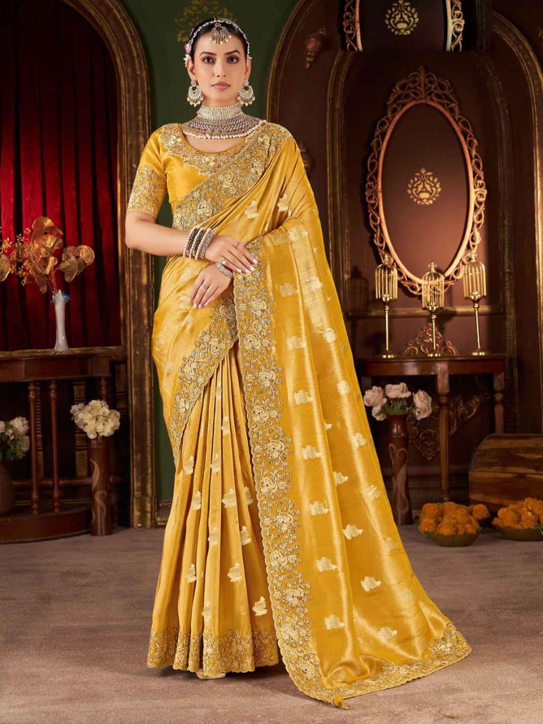 in Yellow with Zari work