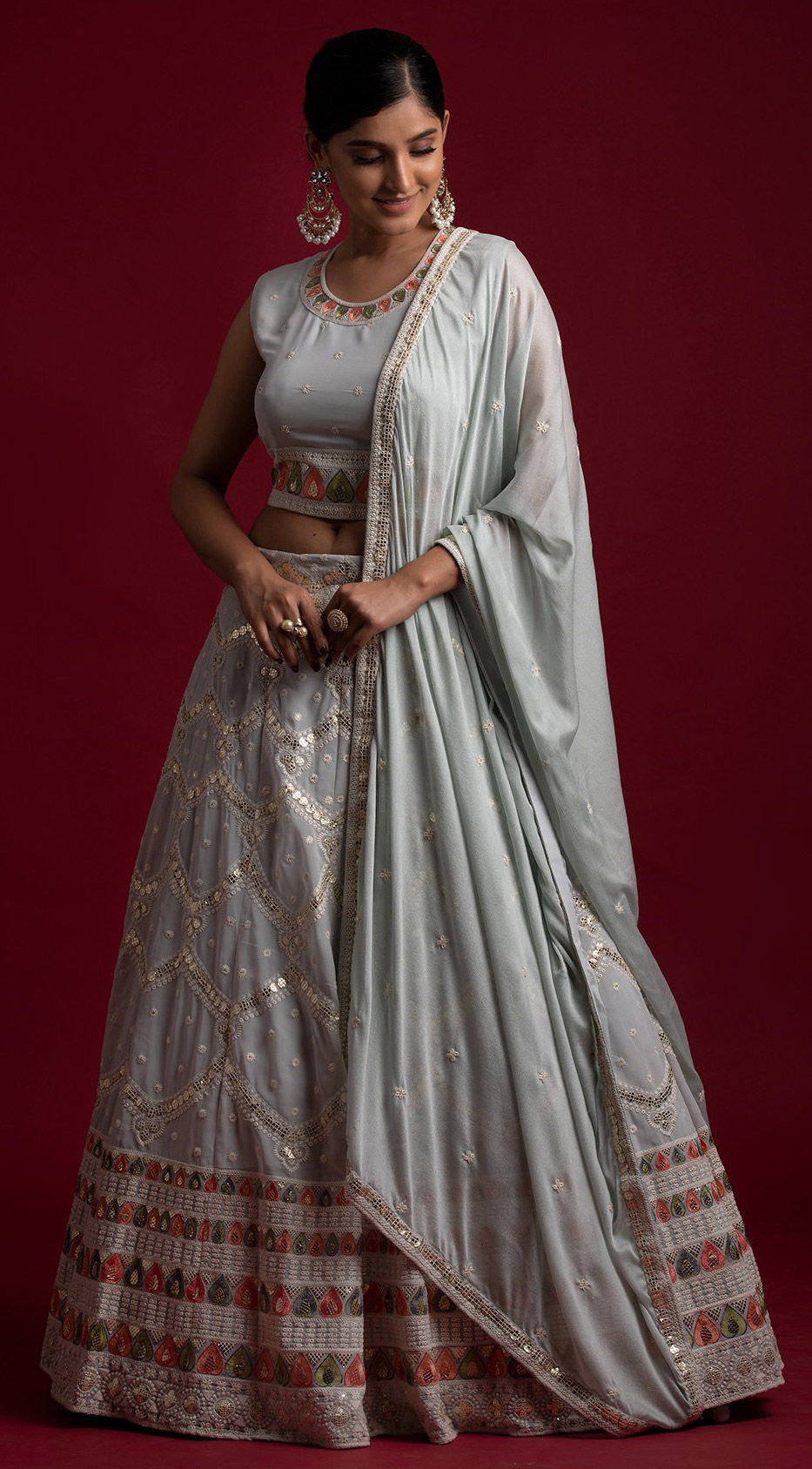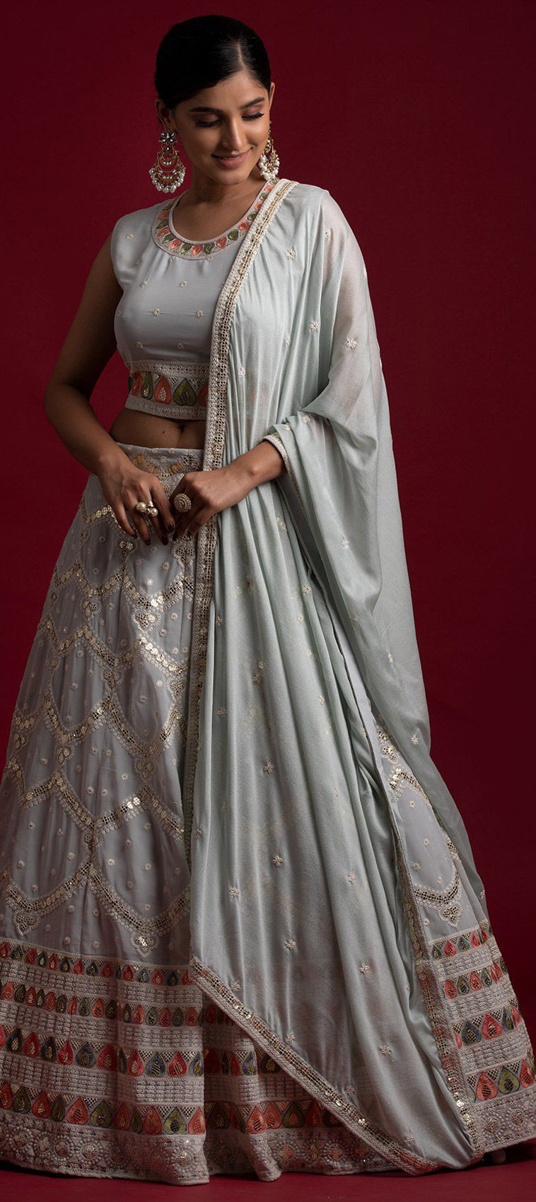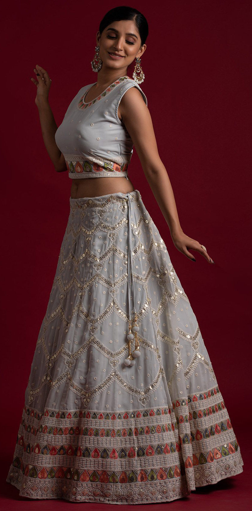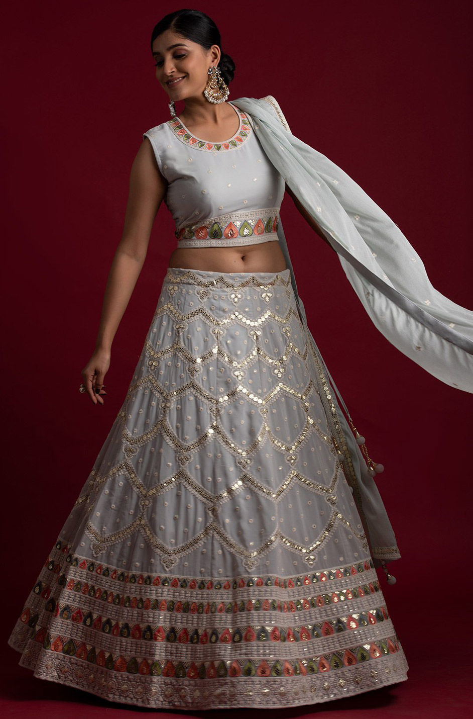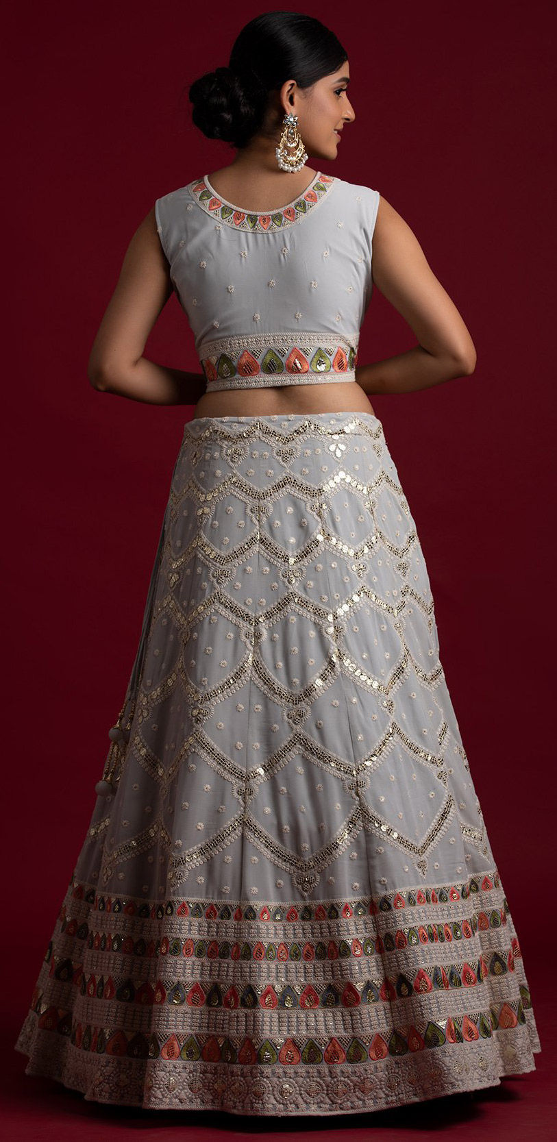Black and Grey color Ready to Wear Lehenga in Georgette fabric with Gota Patti, Thread work