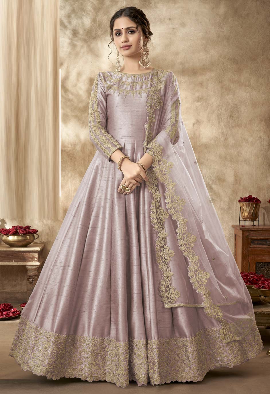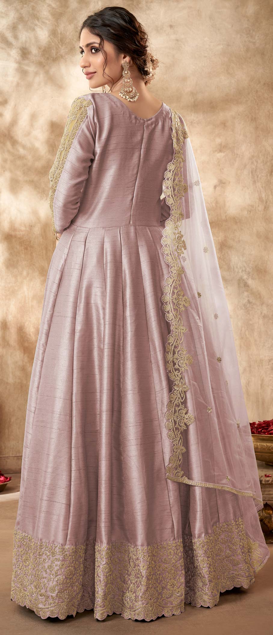 Purple and Violet color Salwar Kameez in Art Silk fabric with Embroidered, Stone, Thread, Zari work