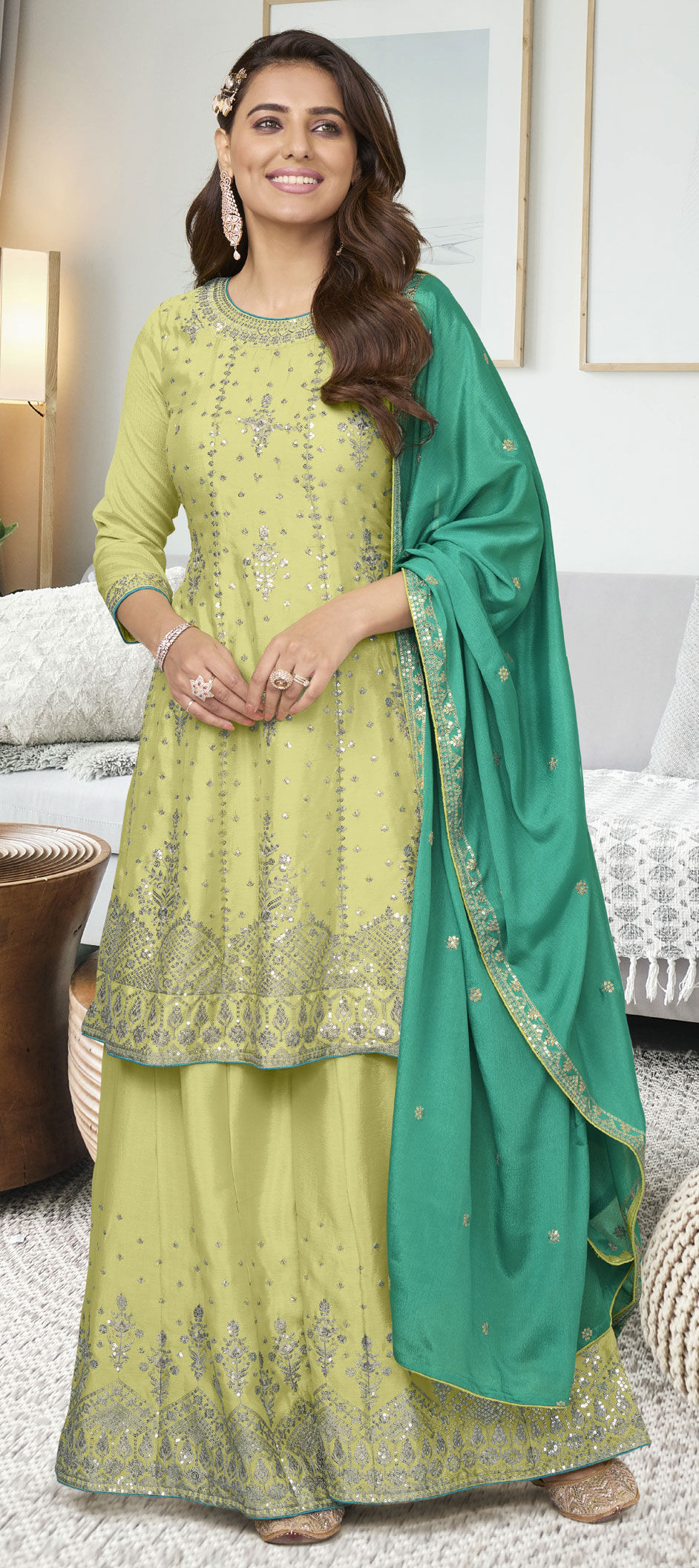 Green color Salwar Kameez in Art Silk fabric with Embroidered, Resham, Sequence, Thread work