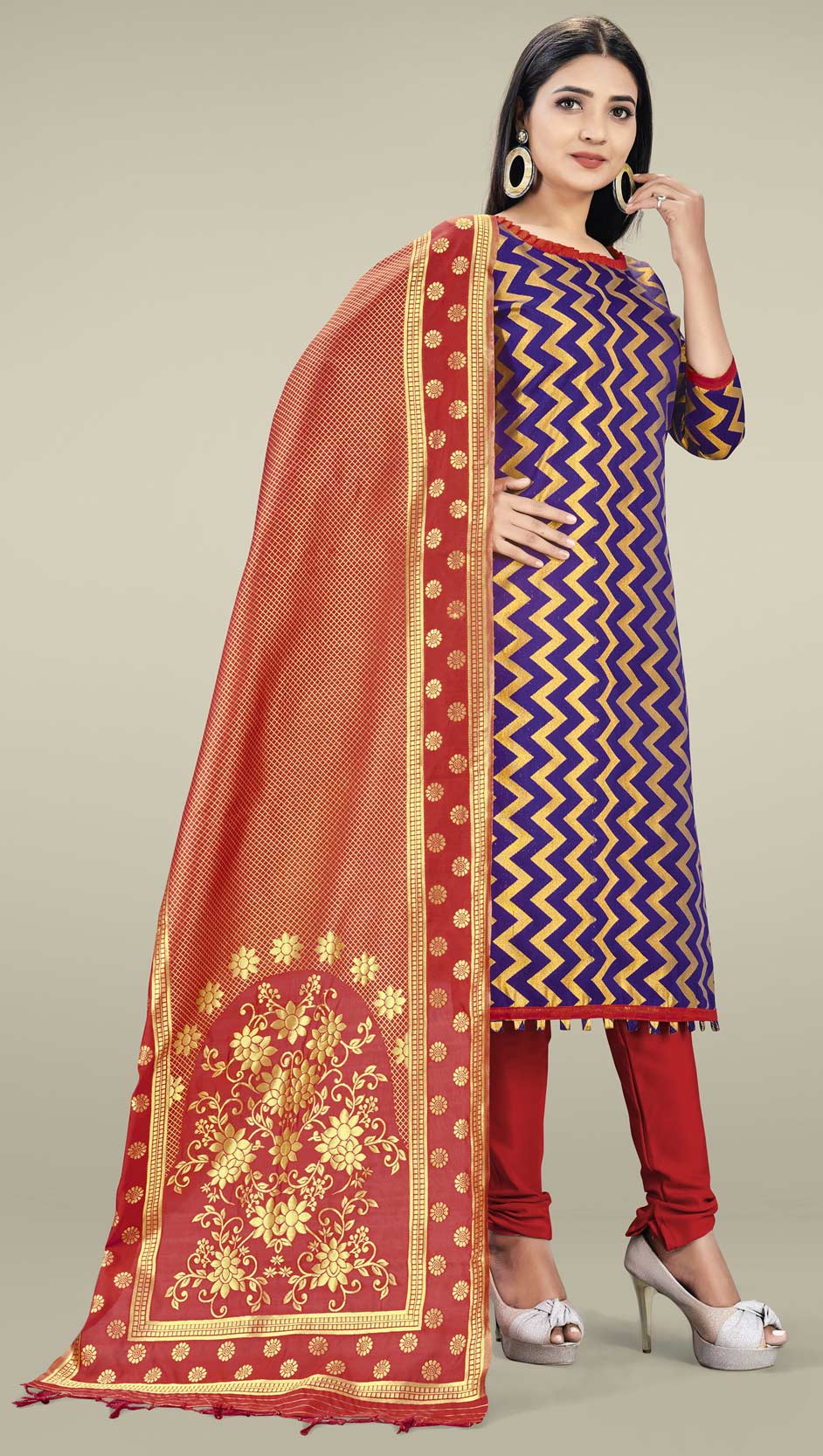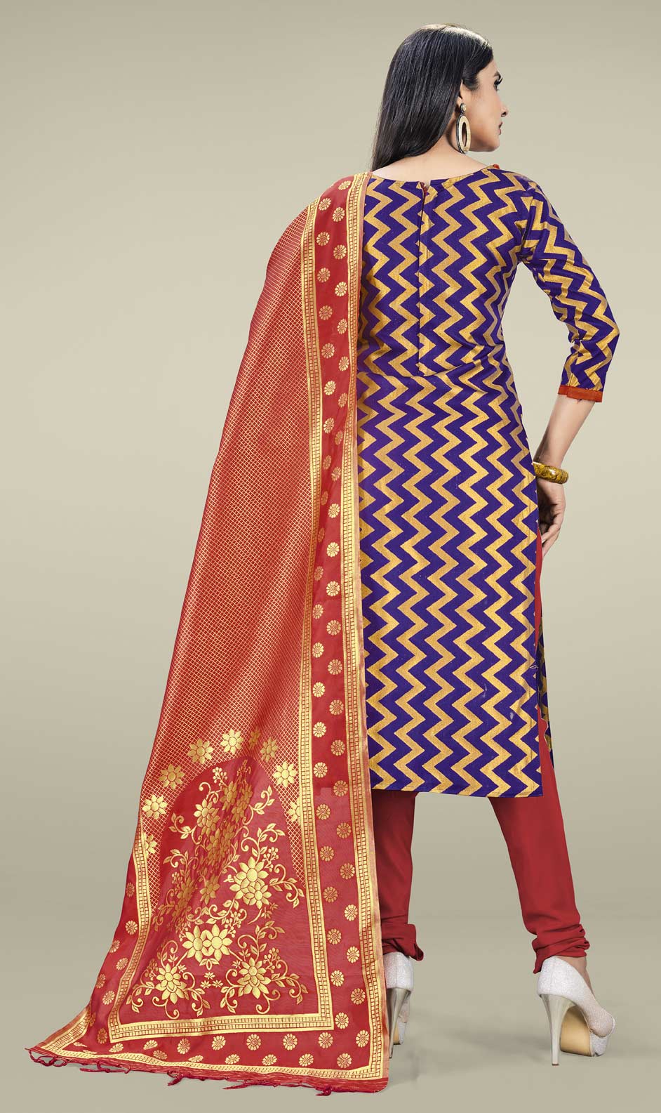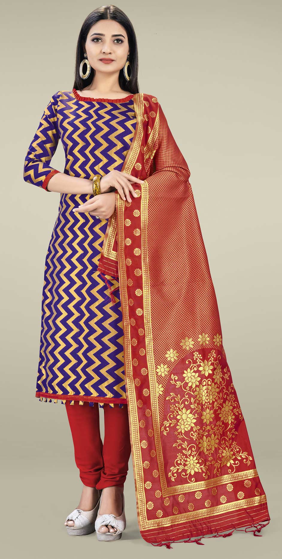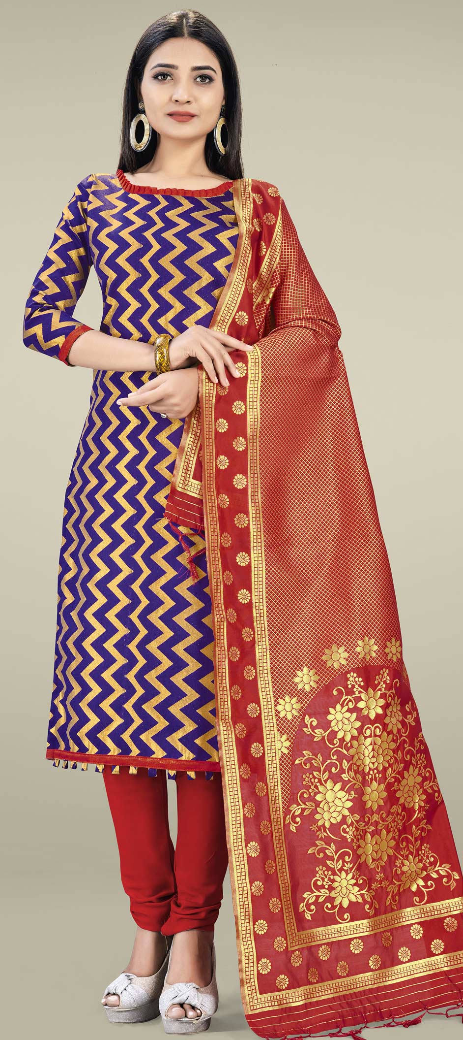 Blue color Salwar Kameez in Banarasi Silk fabric with Weaving work