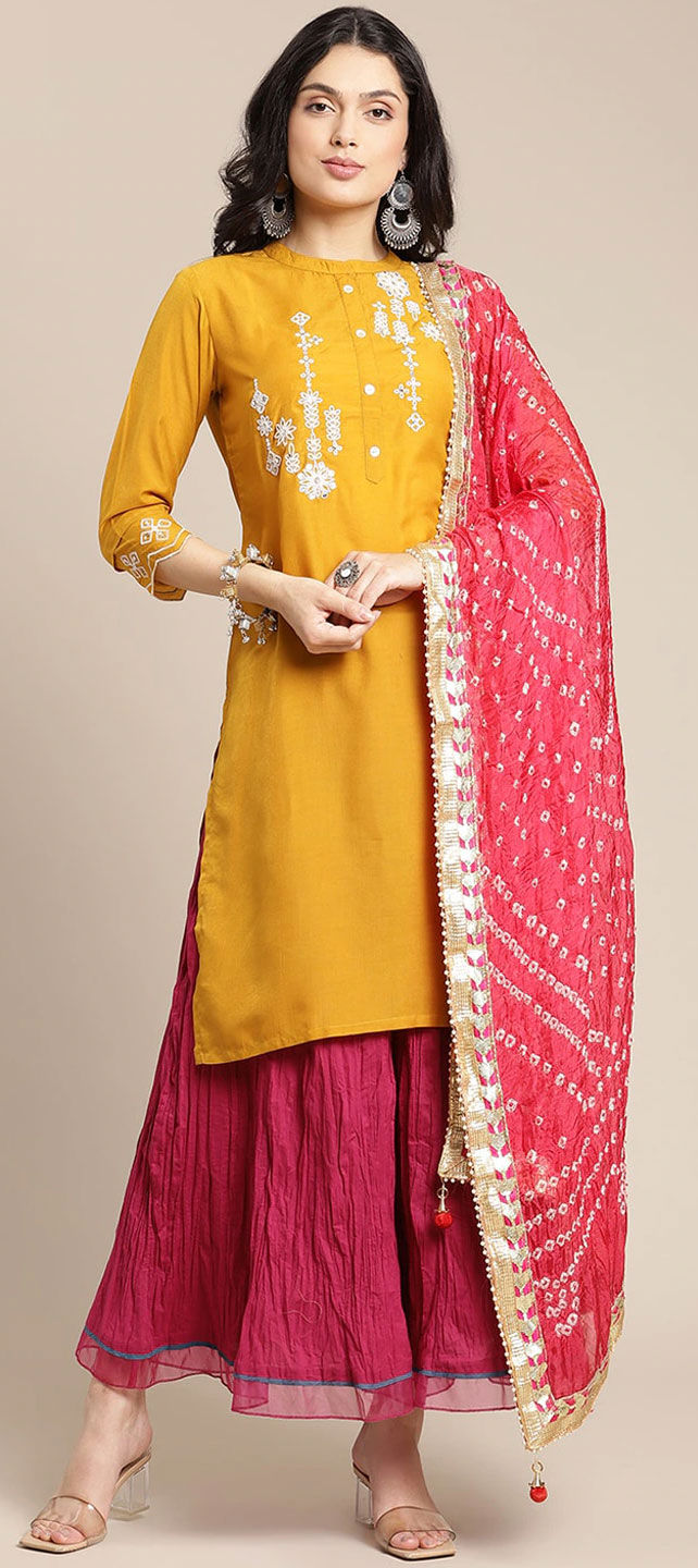 Yellow color Salwar Kameez in Blended fabric with Embroidered, Resham, Thread work