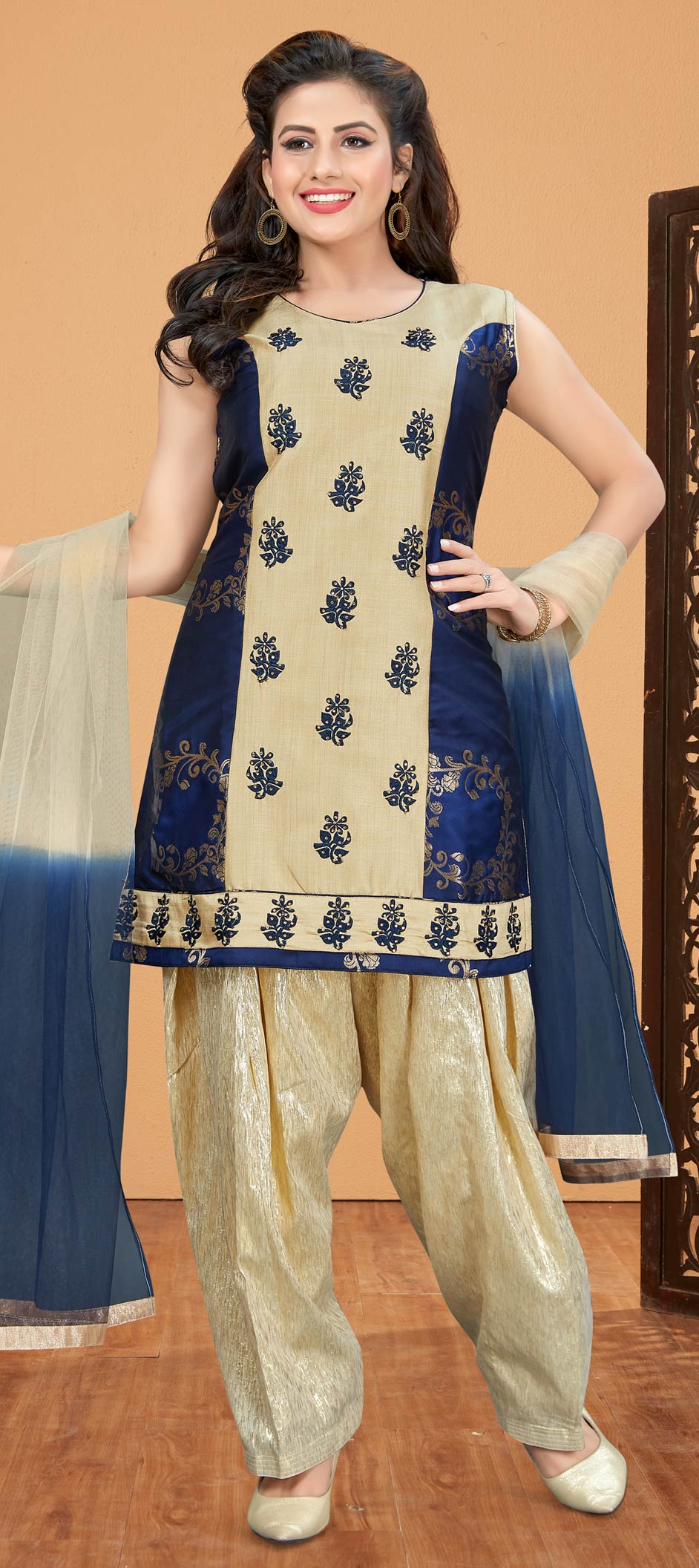 Blue color Salwar Kameez in Brocade fabric with Embroidered, Resham work