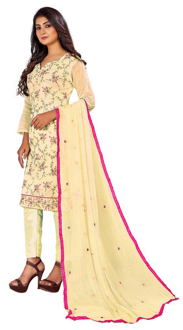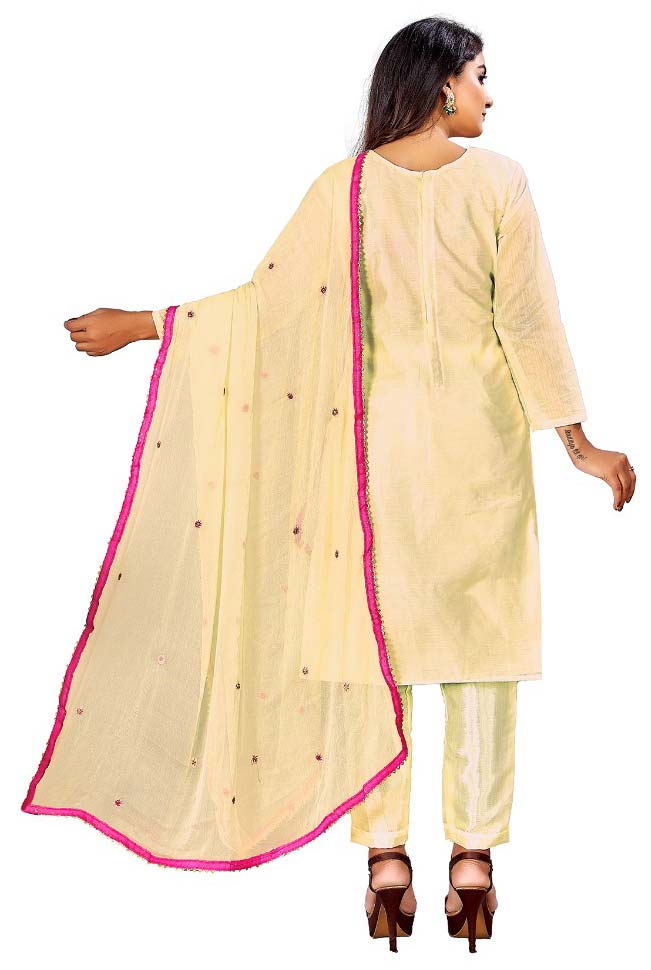 Yellow color Salwar Kameez in Chanderi Silk fabric with Embroidered, Sequence, Thread work