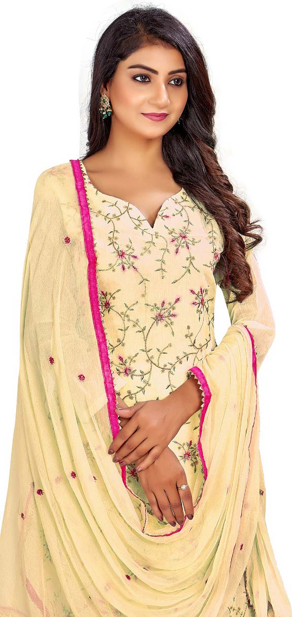 in Yellow with Embroidered work