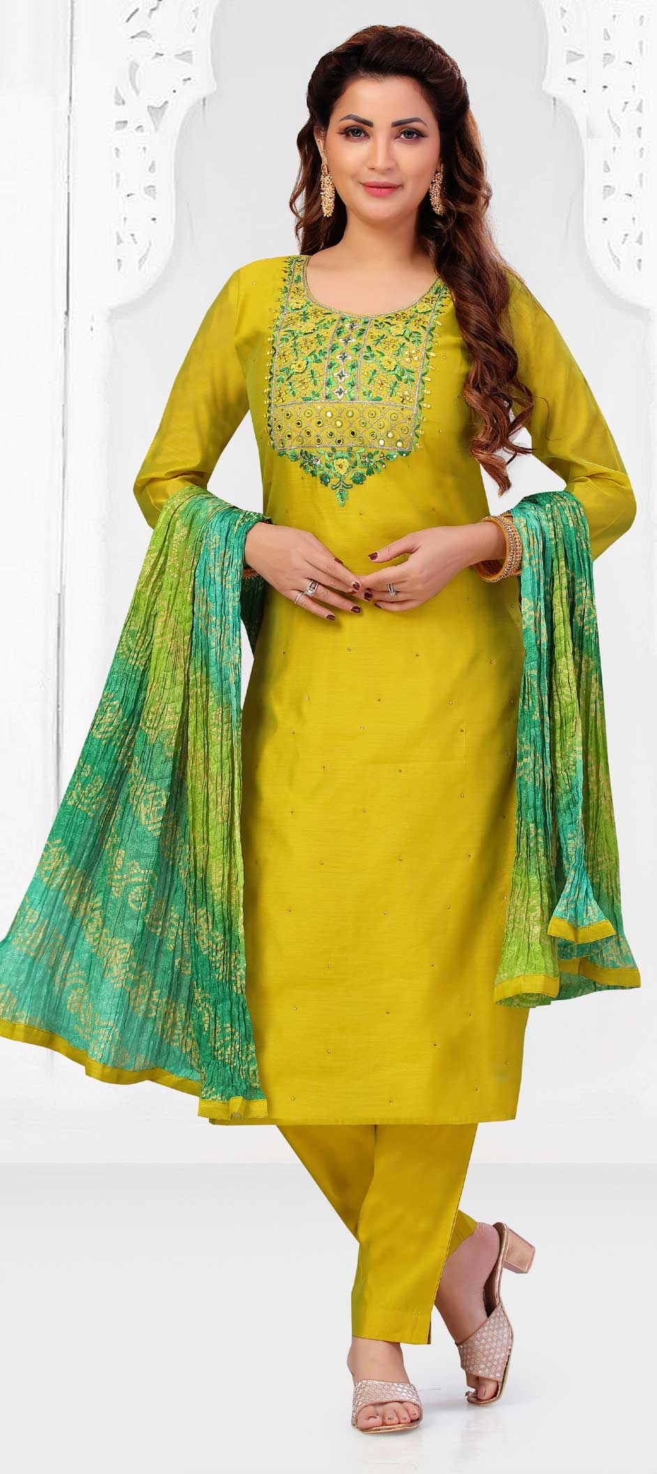 in Yellow with Embroidered work