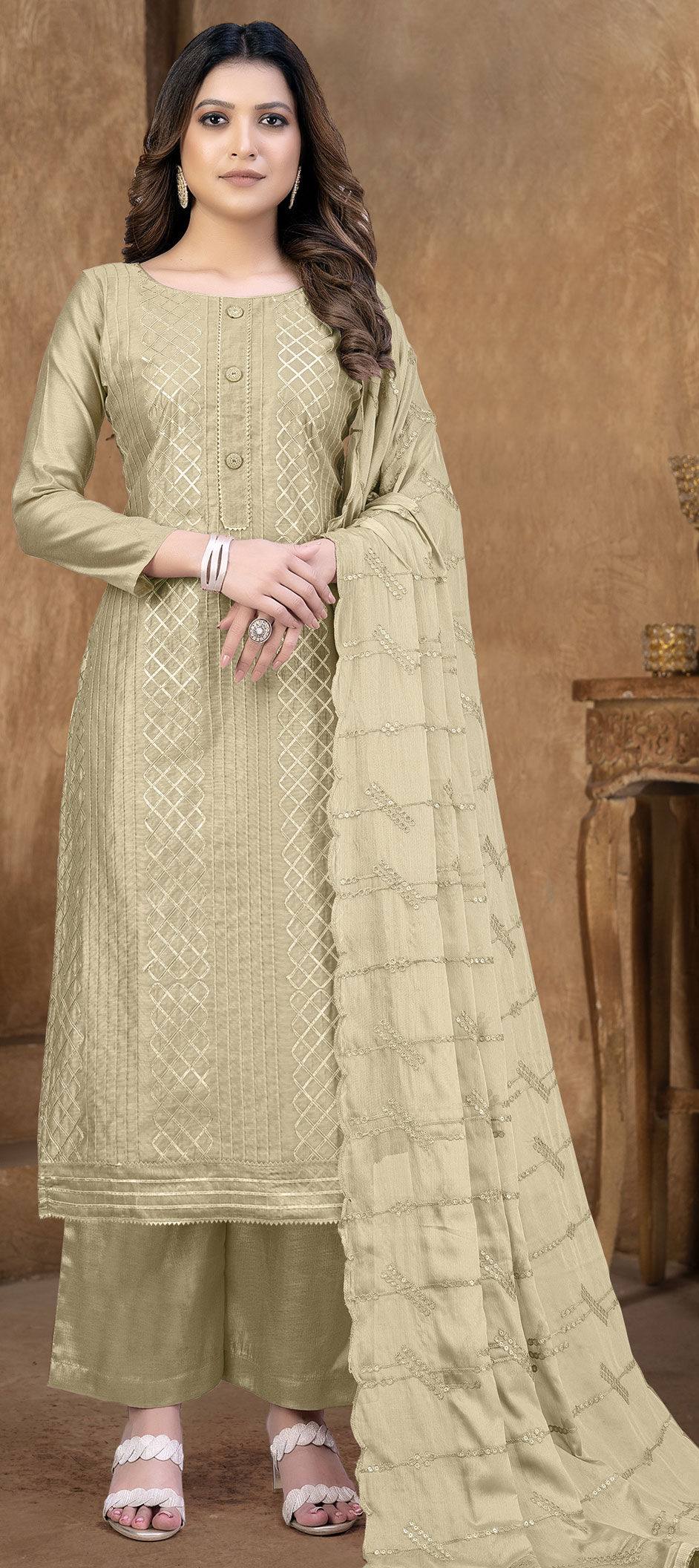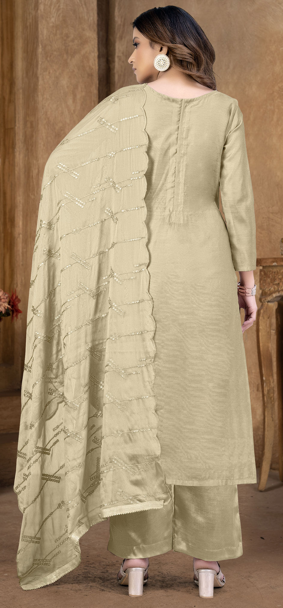 Beige and Brown color Salwar Kameez in Chanderi Silk fabric with Gota Patti work