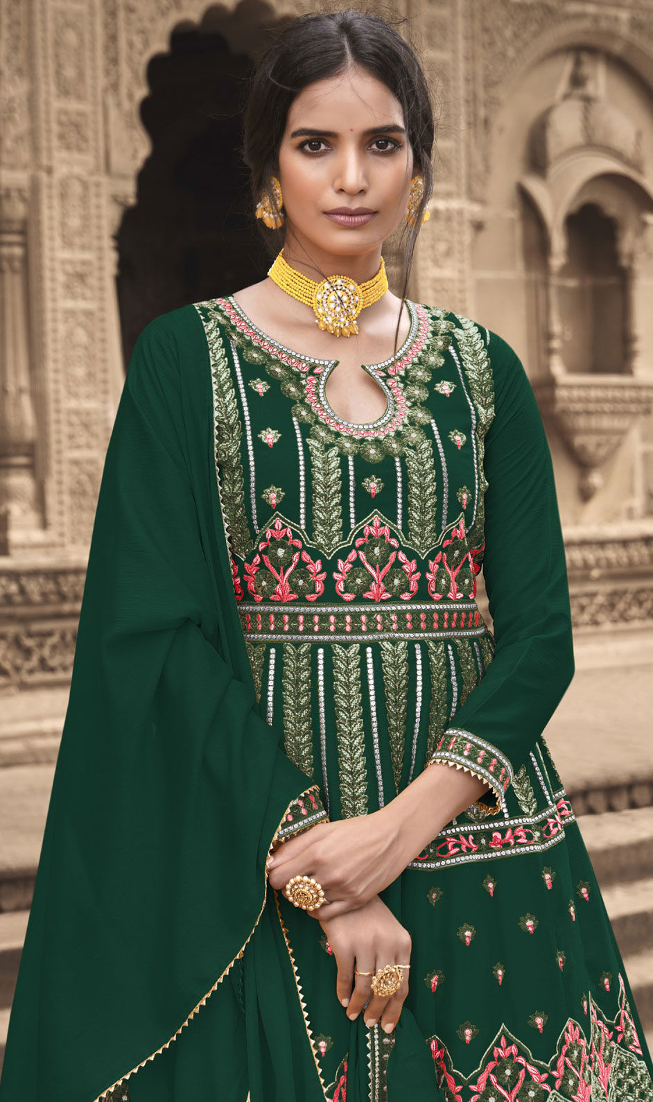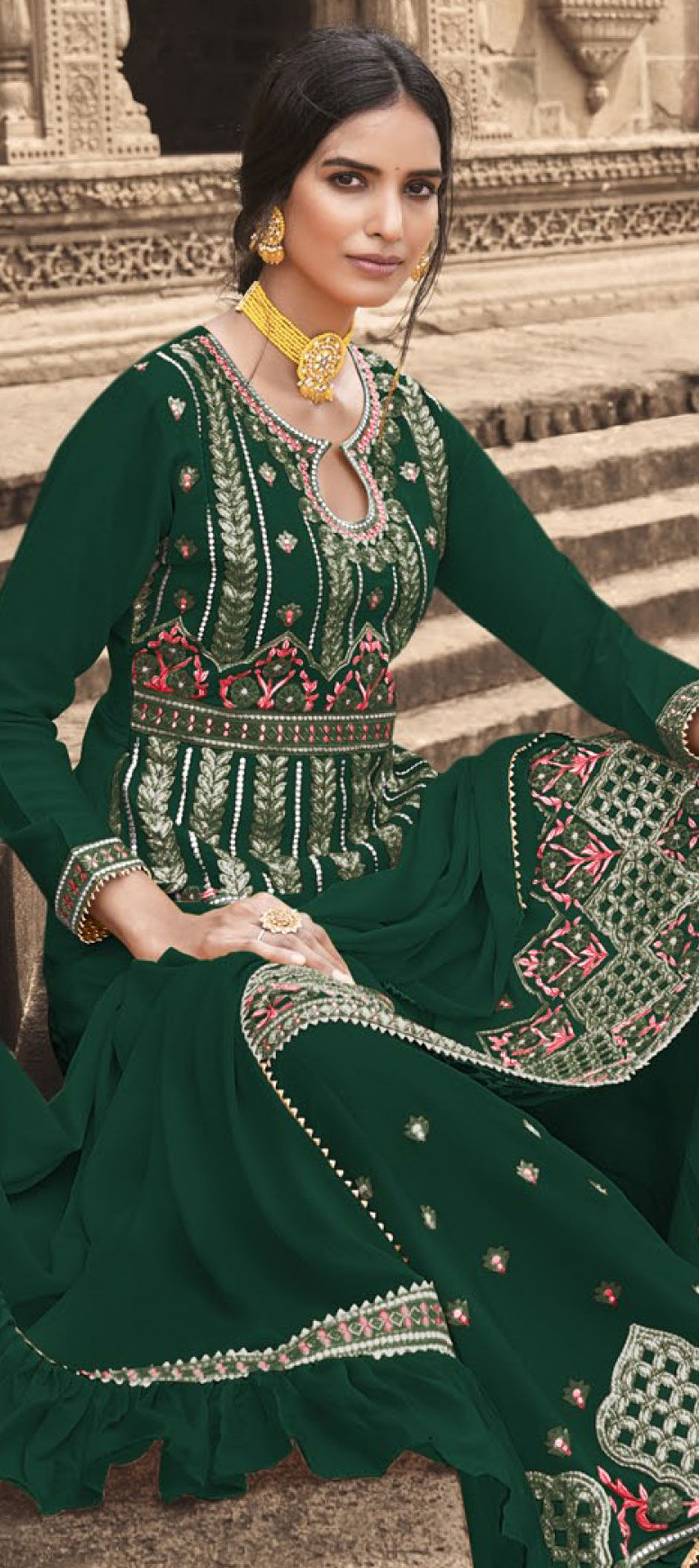 Green color Salwar Kameez in Chiffon fabric with Embroidered, Resham, Thread, Zari work