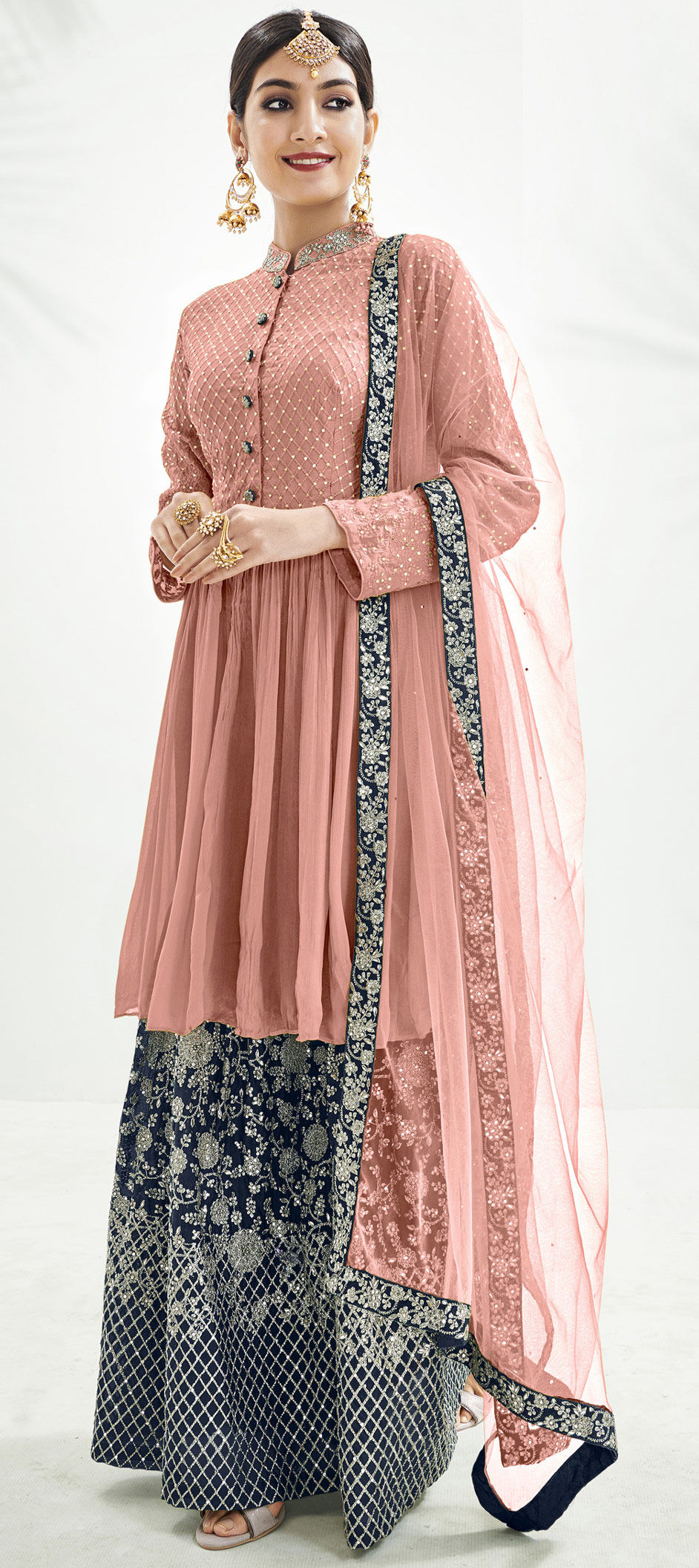 Pink and Majenta color Salwar Kameez in Chiffon fabric with Embroidered, Sequence, Thread work