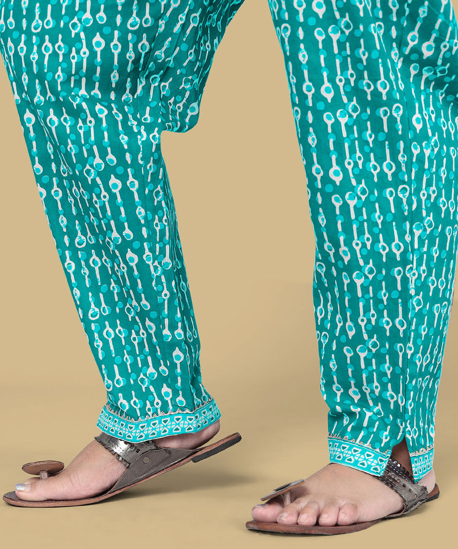 Cotton Casual Salwar Kameez in Green with Printed work