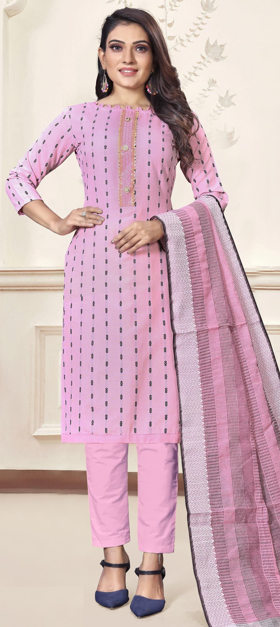 Pink and Majenta color Salwar Kameez in Cotton fabric with Embroidered, Thread work