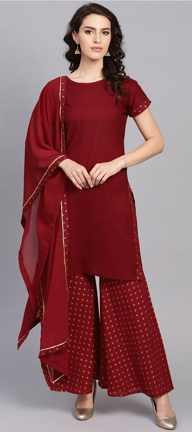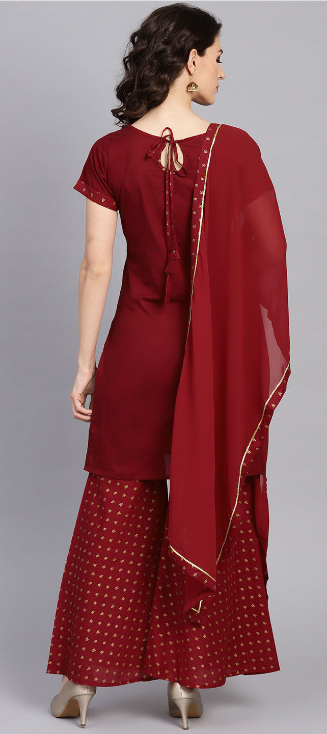 Red and Maroon color Salwar Kameez in Cotton fabric with Printed work