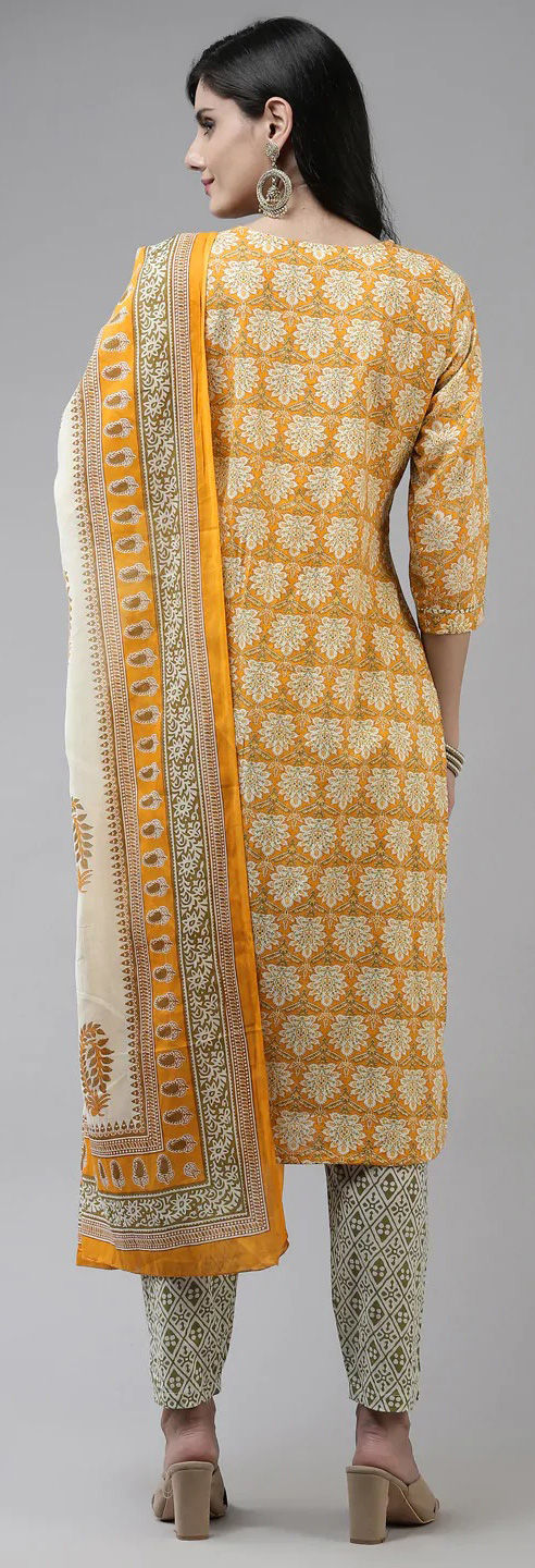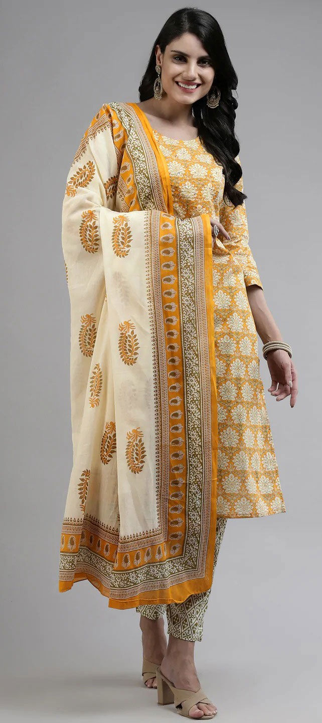 Yellow color Salwar Kameez in Cotton fabric with Printed work